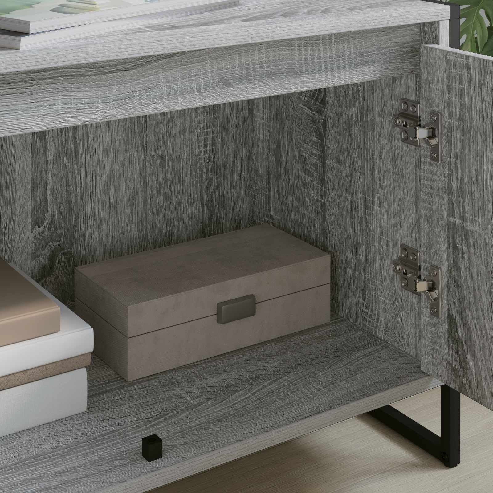 Deze tv-kast laat een moderne en industriële stijl zien, en past prima in elke woonkamer. Het bewerkte hout en het rechthoekige ontwerp maken het aantrekkelijk en functioneel, met genoeg ruimte voor allerlei media-apparaten. De mix van materialen zorgt voor stijl en duurzaamheid, perfect voor wie een mooie maar stevige opbergoplossing zoekt.