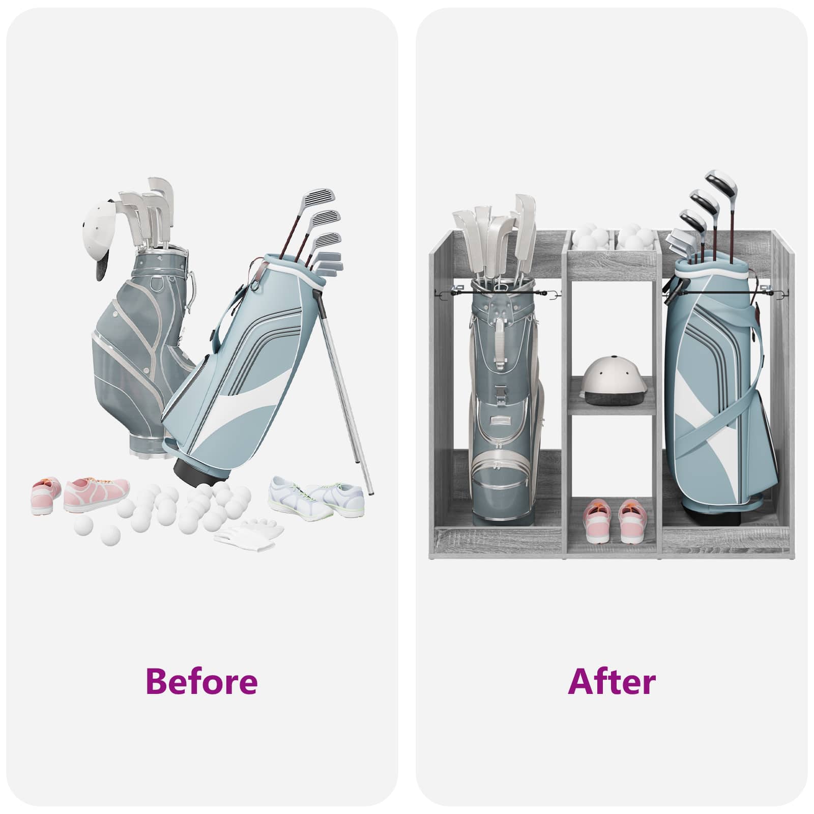 - Aangeraden Gebruik: Perfect voor garages of binnenruimtes waar je veelzijdige opslag nodig hebt. Of het nu gaat om golfuitrusting of andere spullen, het kan overal staan waar het past. Dit meubel gaat verder dan alleen sport en is ook handig voor andere opslagbehoeften.
