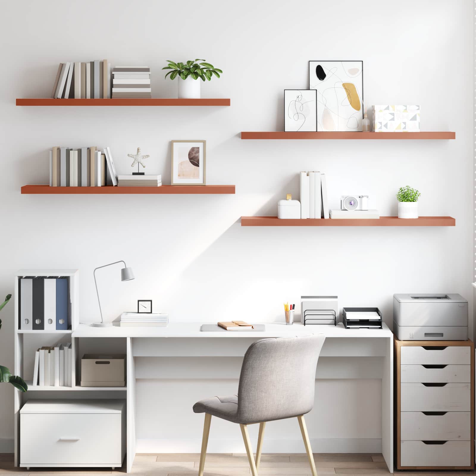 - Muurmontage ontwerp De plank is ontworpen om aan de muur te worden gemonteerd, wat ideaal is voor huizen die ruimte op de vloer willen besparen en opslag willen optimaliseren. Het strakke uiterlijk past bij verschillende interieurstijlen en biedt zowel praktische als stijlvolle veelzijdigheid. Je kunt decoraties, boeken of keukenbenodigdheden mooi tentoonstellen, terwijl je waardevolle ruimte vrijmaakt.
