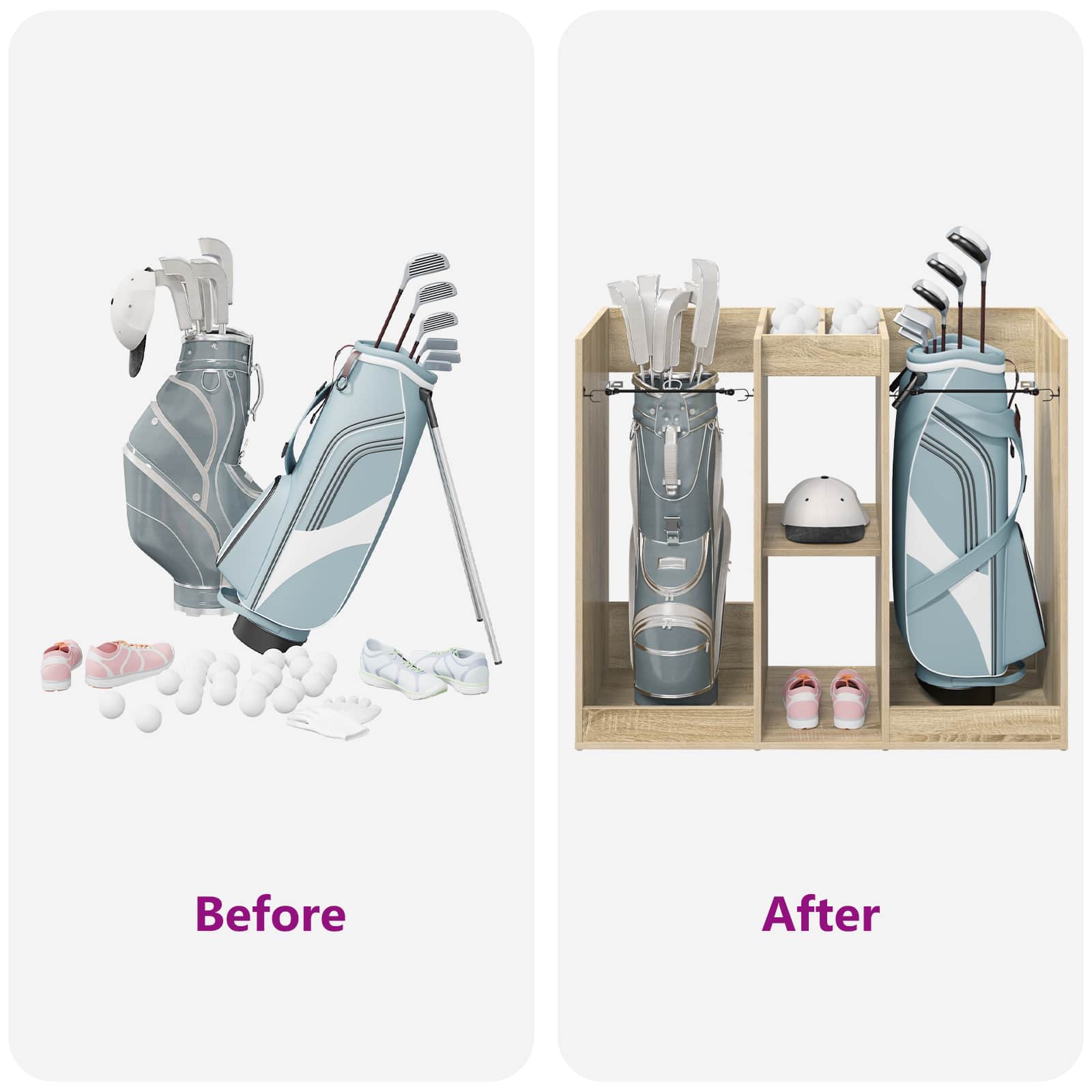 - Aangeraden Gebruik: Perfect voor garages of binnenruimtes waar je veelzijdige opslag nodig hebt. Of het nu gaat om golfuitrusting of andere spullen, het kan overal staan waar het past. Dit meubel gaat verder dan alleen sport en is ook handig voor andere opslagbehoeften.