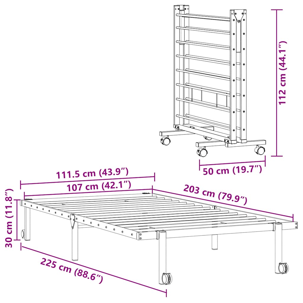 - Gemakkelijk te verplaatsen: dit bedframe is uitgerust met vier wielen, waardoor u moeiteloos naar elke gewenste locatie kunt rijden.
