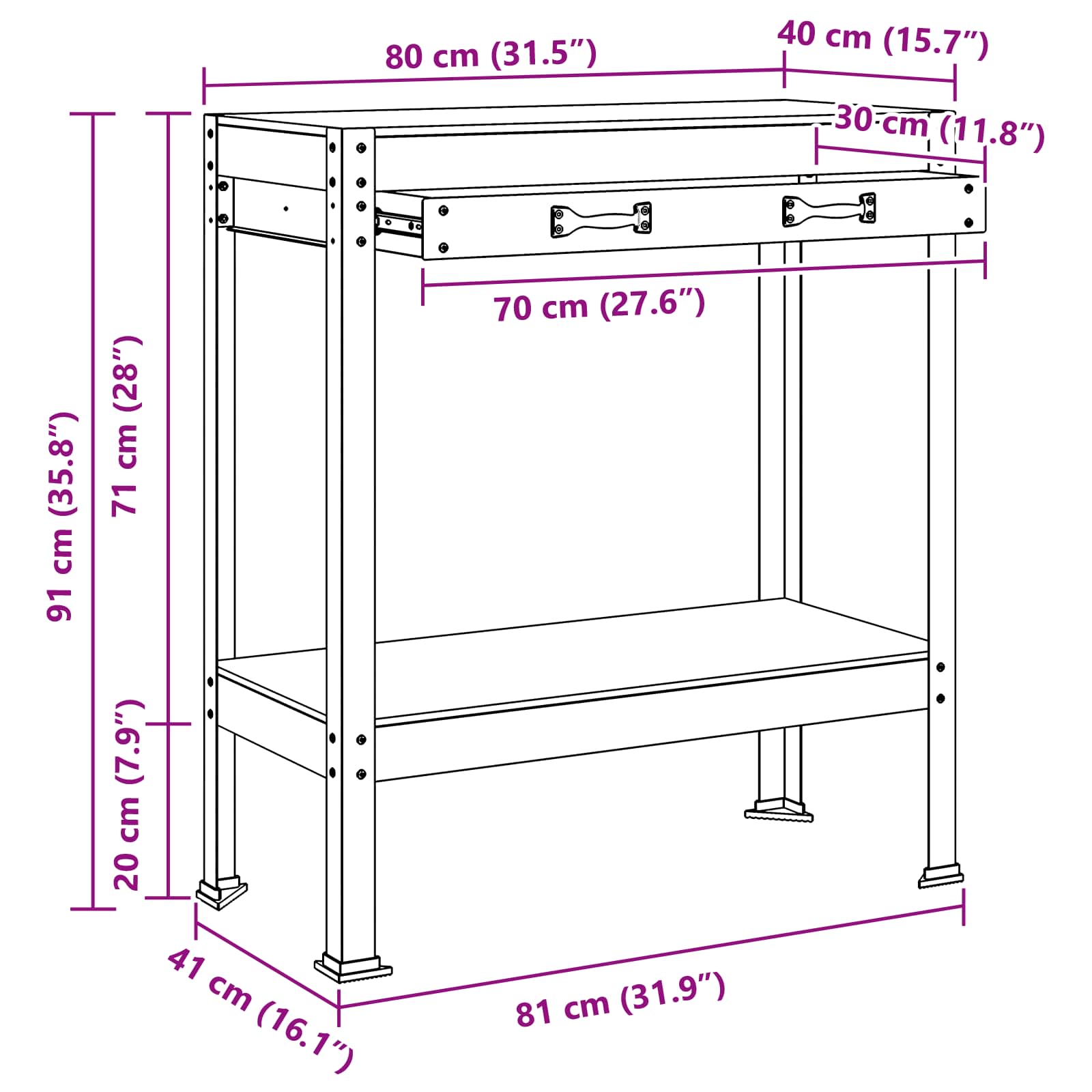 - Materialen: Deze werkbank is gemaakt van hoogwaardig bewerkt hout, wat zorgt voor een aantrekkelijk en stevig oppervlak voor al je projecten. De robuuste metalen onderdelen garanderen dat deze combinatie duurzaam is en zijn strakke uitstraling behoudt, zelfs bij intensief gebruik in drukke werkplaatsen.