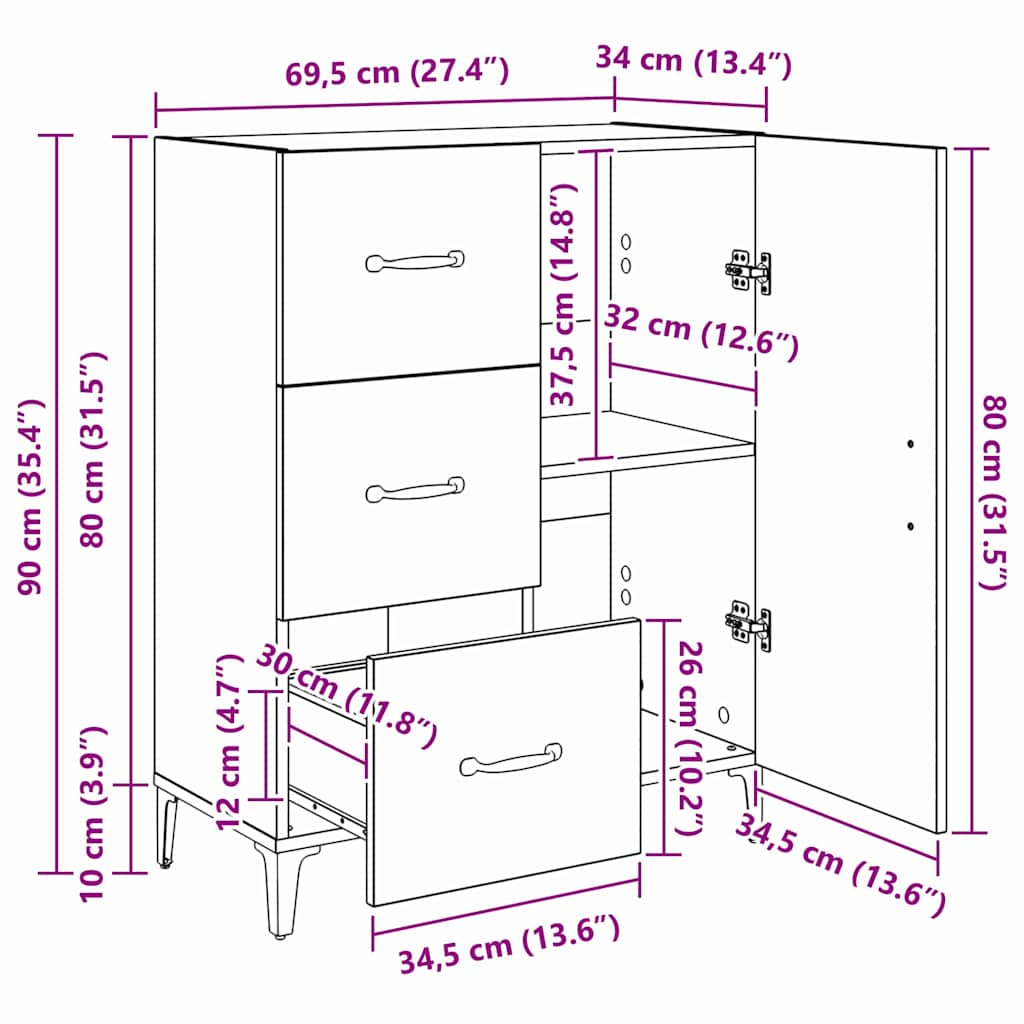 - Totale afmetingen: 69,5 x 34 x 90 cm (L x B x H)