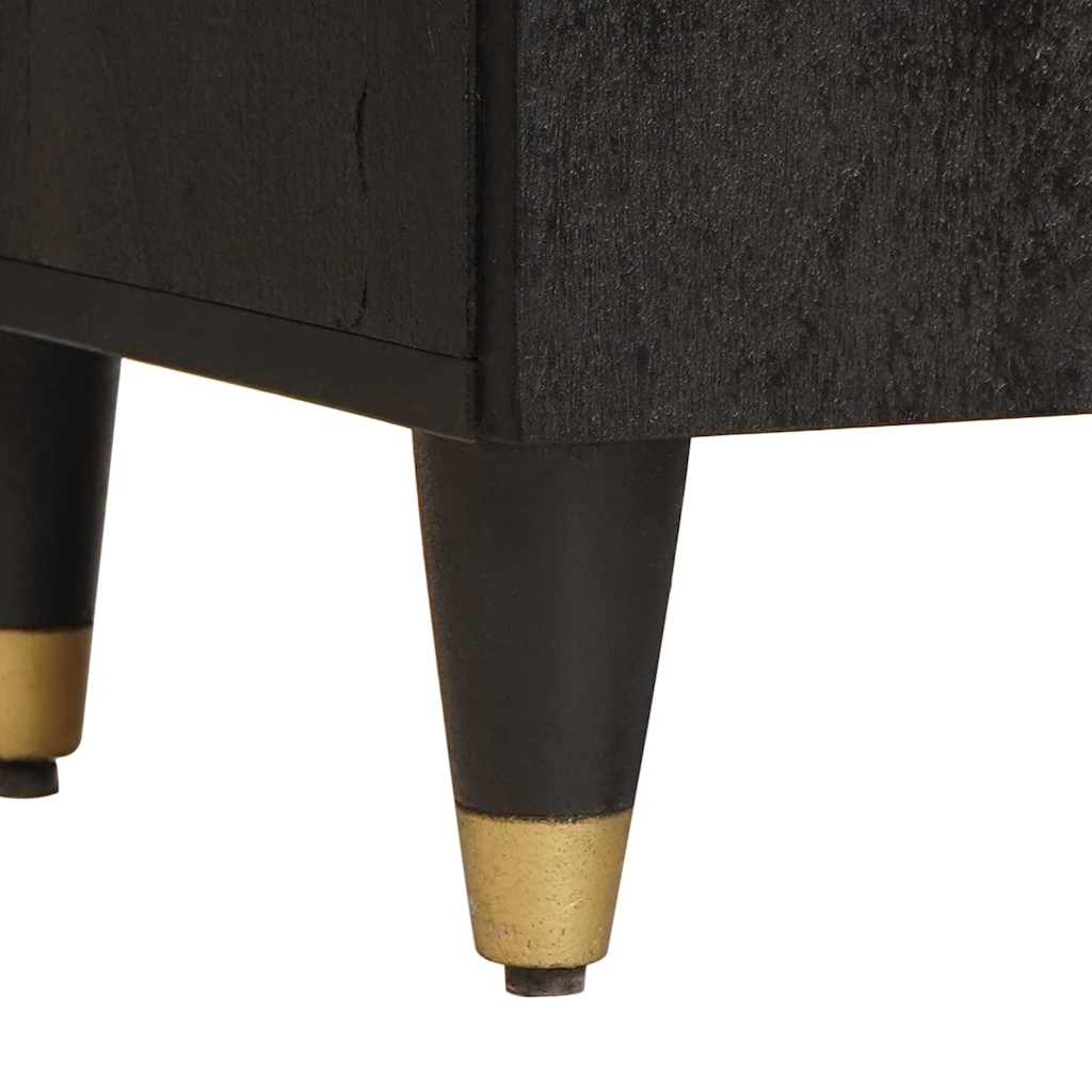 - Inclusief componenten: Deze kast heeft stijlvolle messing handgrepen die luxe aan het ontwerp toevoegen. De schuifdeuren zorgen voor een gladde oppervlakte, die de moderne look onderstreept. De messing poten bieden sterke ondersteuning, zodat hij stabiel blijft.
