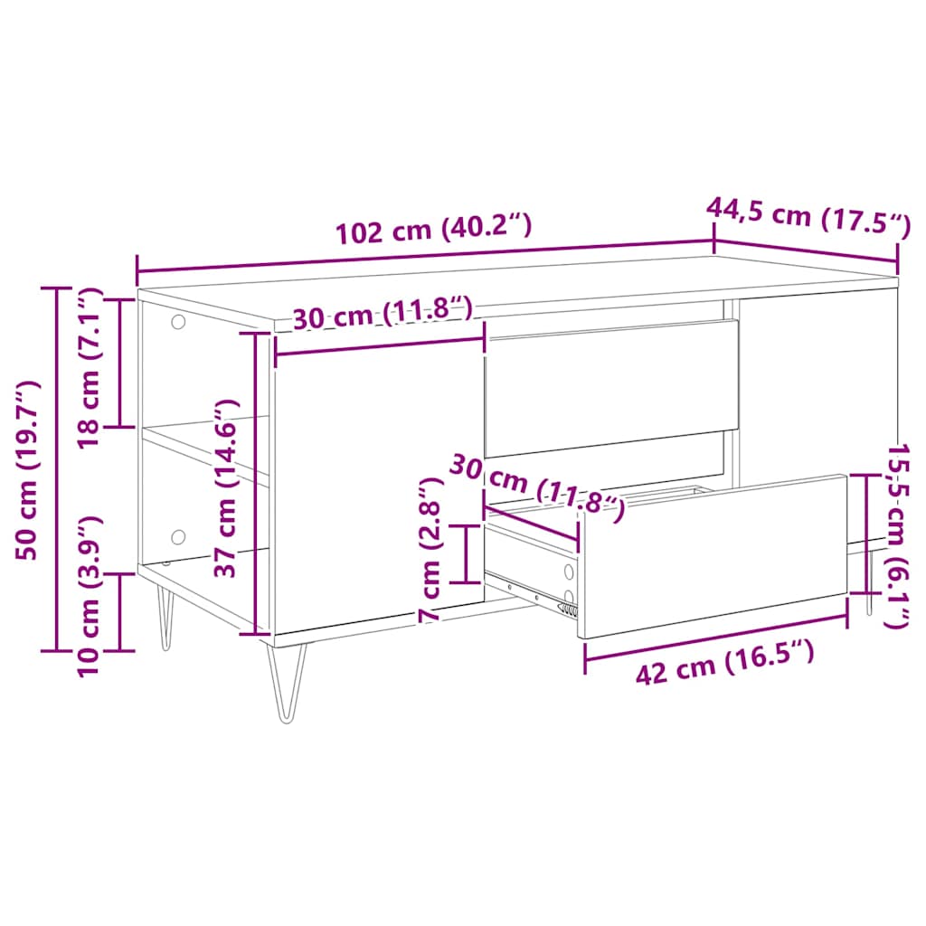 Deze moderne salontafel is een stijlvolle en praktische blikvanger in elke woonkamer. Zijn strakke ontwerp met eenvoudige lijnen en geen franje past bij verschillende interieurstijlen. Met afmetingen van 102 x 44,5 x 50 cm heb je genoeg ruimte om decoraties te tonen of drankjes en tijdschriften neer te zetten. Speciaal gemaakt voor binnen, biedt deze tafel eenvoud en functionaliteit als een basisstuk in je huis.