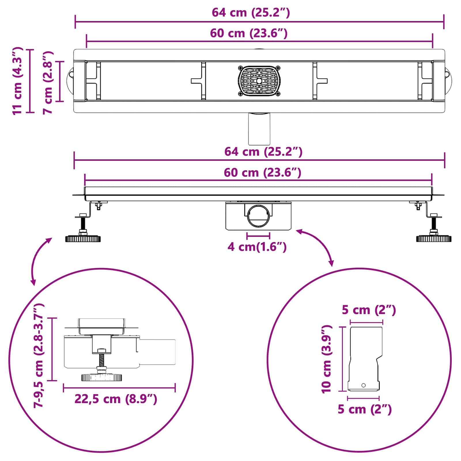 - Roestvrij staal constructie: Gemaakt van hoogwaardig roestvrij staal 304, heeft deze douchegoot een glad oppervlak dat vlekken afschrikt. De sterke duurzaamheid zorgt ervoor dat hij jarenlang betrouwbaar werkt, wat bijdraagt aan een geweldige badkamerervaring.