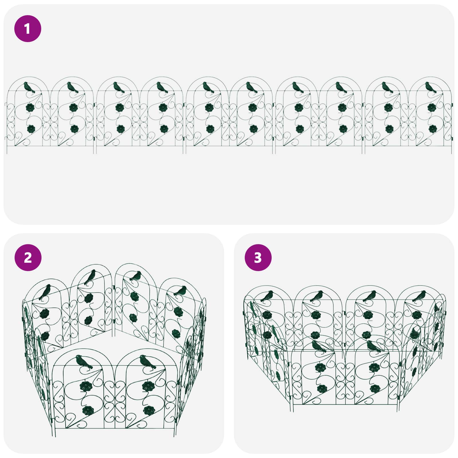 - Stevige ijzeren structuur Deze afscheiding gemaakt van duurzaam ijzer combineert sterkte met elegantie. Het ijzeren frame is stevig en ziet er tegelijkertijd stijlvol uit, waardoor hij in verschillende tuinstijlen past. Het ontwerp zorgt ervoor dat hij stabiel blijft en lang meegaat, ongeacht het weer, en blijft betrouwbaar als afscheiding of omheining.