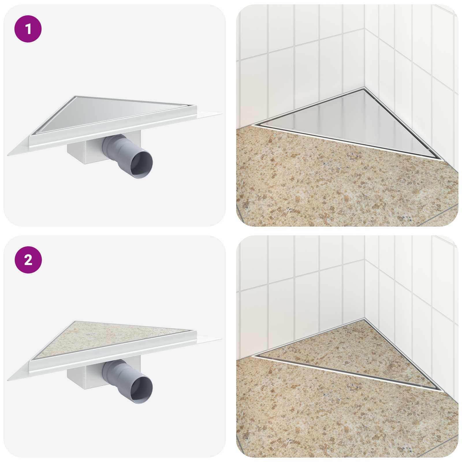 Deze slimme 2-in-1 douchafvoer in driehoekvorm combineert stijl met functionaliteit, speciaal voor moderne badkamers. Het trendy ontwerp past perfect in douchhoeken en biedt een stijlvolle oplossing voor goede afwatering. Dit product is voor iedereen die houdt van een minimalistische look met een grote impact. Het geeft je badkamer een nette uitstraling en past bij elk interieur.