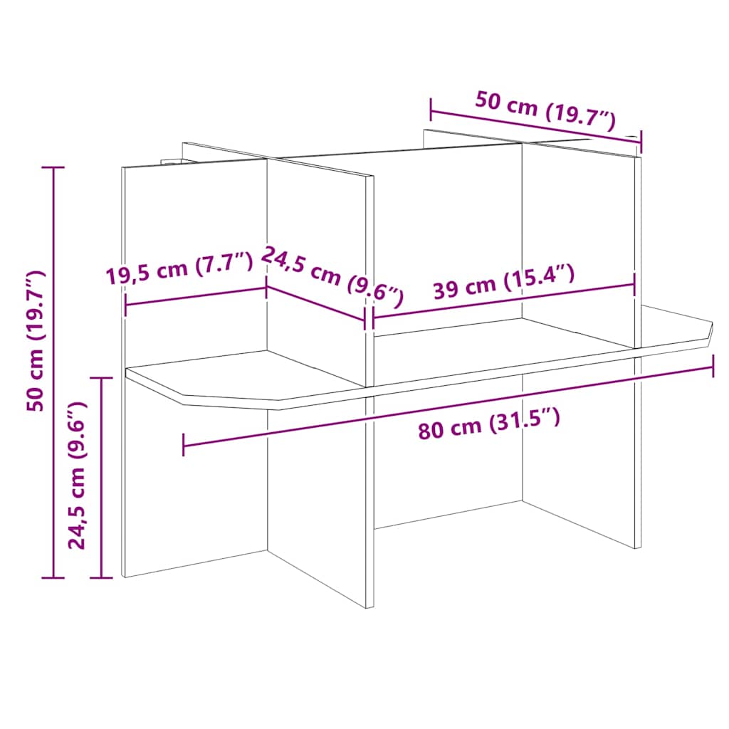 - Algemene afmetingen: 80 x 50 x 50 cm (L x B x H)