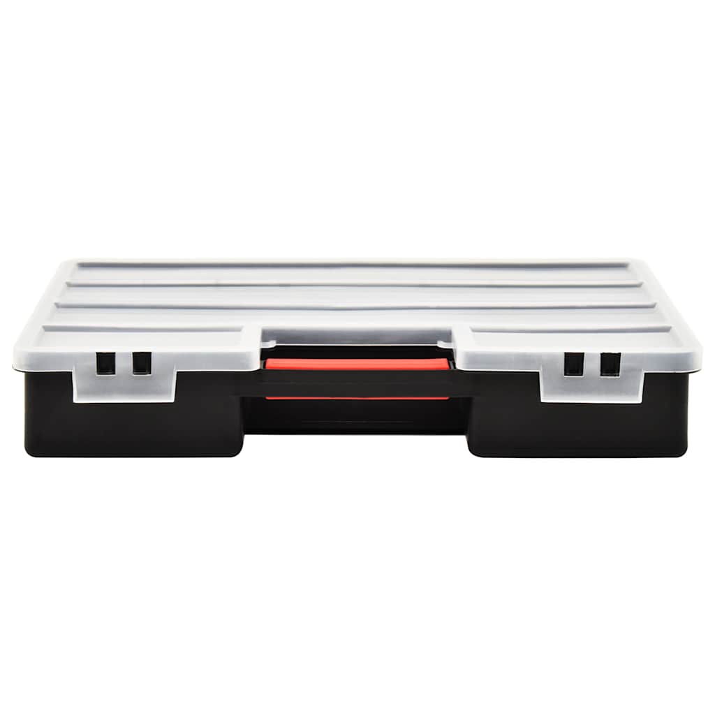 Deze praktische gereedschapsopberger is een uitstekende oplossing voor mensen die netheid en orde waarderen tijdens het klussen en knutselen, maar ook voor professionals op de werkplek. Dankzij het transparante deksel kun je gemakkelijk bouten, moeren, spijkers en andere kleine onderdelen herkennen en vinden. Met de 21 verstelbare verdelers kan de assortimentenkoffer worden verdeeld in maximaal 26 vakken, zodat alles zijn plaats vindt. Door het gebruiksvriendelijke handvat draag je de inhoud overal mee naartoe.
