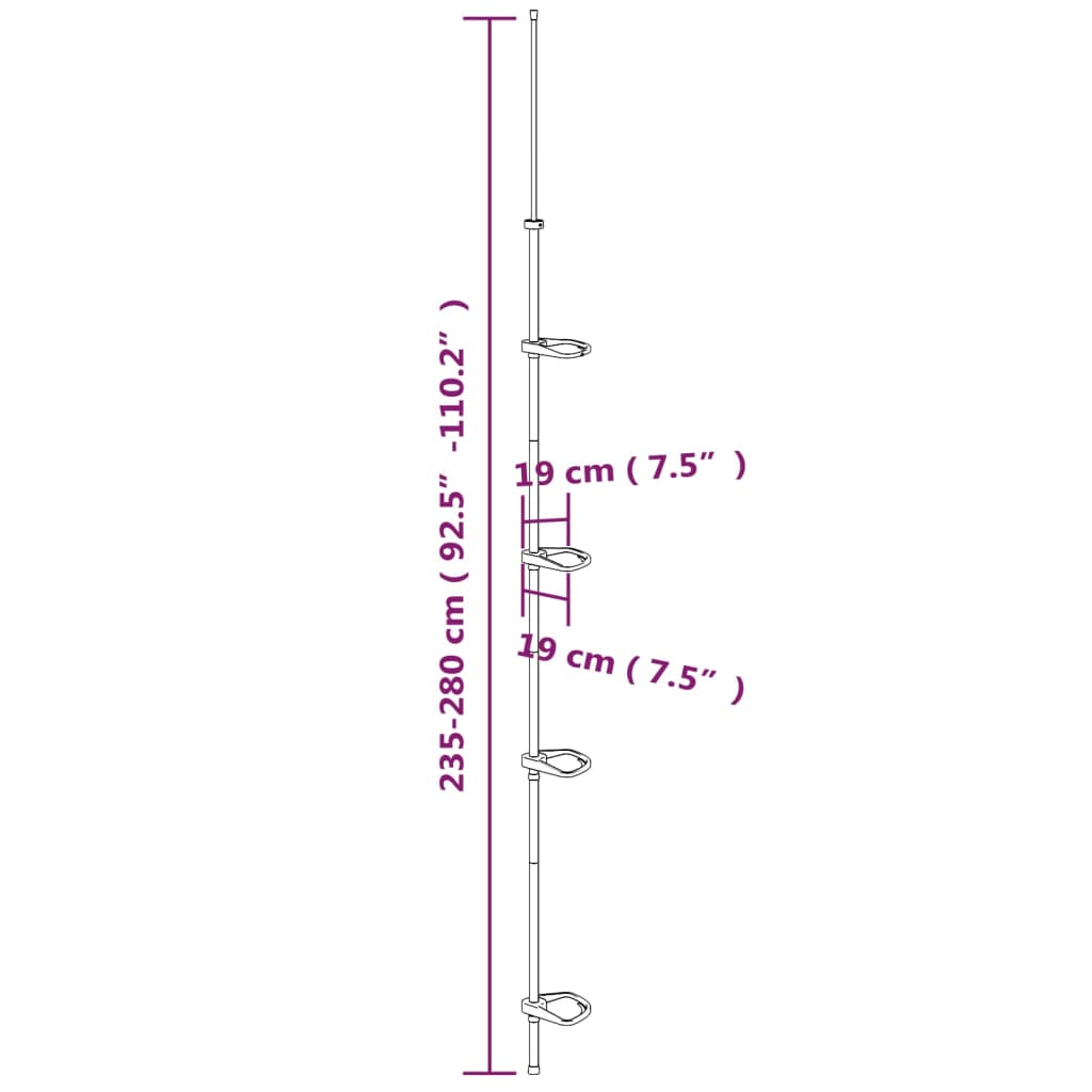 - Verstelbaar ontwerp: het doucherekje is in hoogte verstelbaar van 235 tot 280 cm, en is dus aanpasbaar aan de beschikbare plaats. Om aan je verschillende opslagbehoeften te voldoen zijn ook de posities van de bakjes instelbaar.