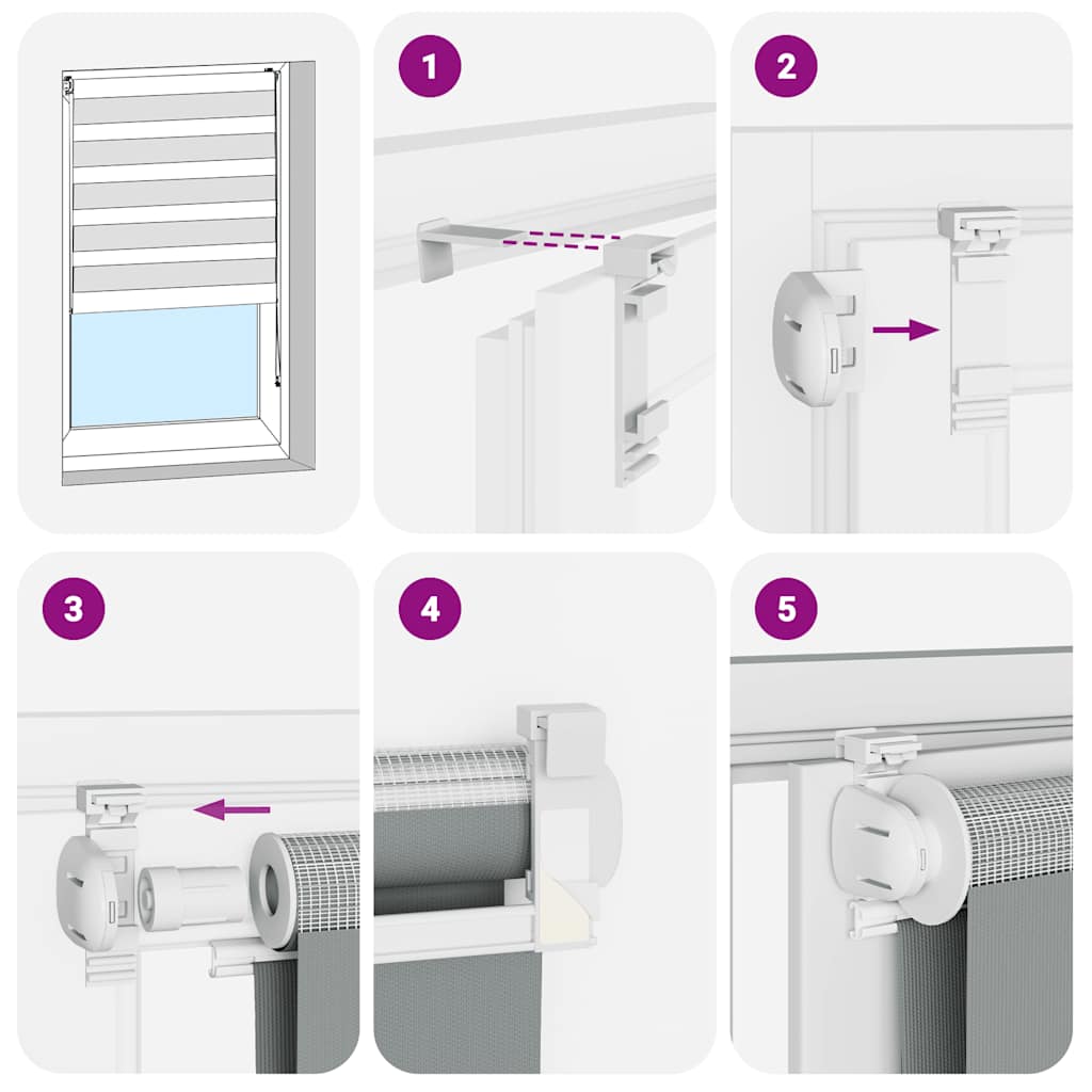 - Twee montagewijzen: u kunt het zebra-rolgordijn aan de muur of het raam bevestigen met schroeven of zonder te boren met klembeugels, afhankelijk van uw behoeften.