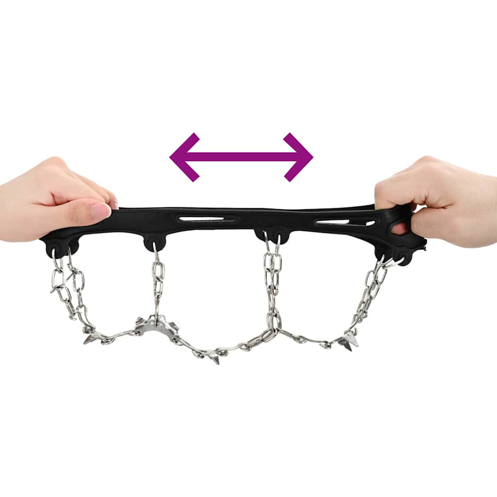 - Materialen: Deze ijsgrepen zijn gemaakt van hoogwaardig thermoplastisch elastomeer en roestvrij staal, wat zorgt voor duurzaamheid en topprestaties. Het elastomeer beweegt soepel en springt terug, waardoor je snel over verschillende ondergronden kunt bewegen. De roestvrijstalen tanden zijn sterk en gaan lang mee, wat zorgt voor veel gebruiksgemak.