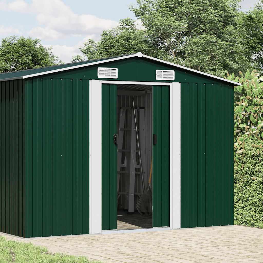 Deze berging is voorzien van ventilatieopeningen voor een uitstekende ventilatie. De dubbele schuifdeuren aan de voorkant zorgen voor gemakkelijk in- en uitstappen. Dankzij de gegalvaniseerde stalen constructie is de gereedschapsberging duurzaam en sterk, en zal deze niet corroderen of worden aangetast door slechte weersomstandigheden.