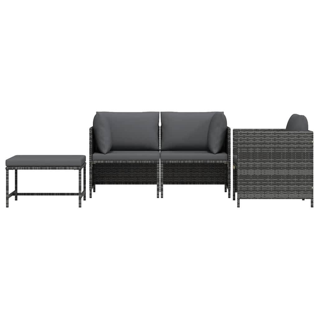 vidaXL 4-delige Loungeset met kussens poly rattan grijs