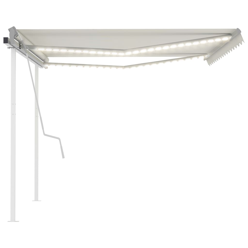 Deze buitenluifel heeft een roestbestendig, gepoedercoat aluminium frame waardoor hij lichtgewicht en toch stevig is. De sterke ijzeren palen maken het geheel stabiel. Het zonnescherm is gemaakt van polyester met een hoge dichtheid en een PU-coating, waardoor het uv- en waterbestendig is. De hoek en hoogte kunnen worden aangepast aan je specifieke behoeften. Je kan de luifel openen en intrekken met de lange handslinger. De solar LED''s bieden je ''s nachts energie-efficiënte verlichting.