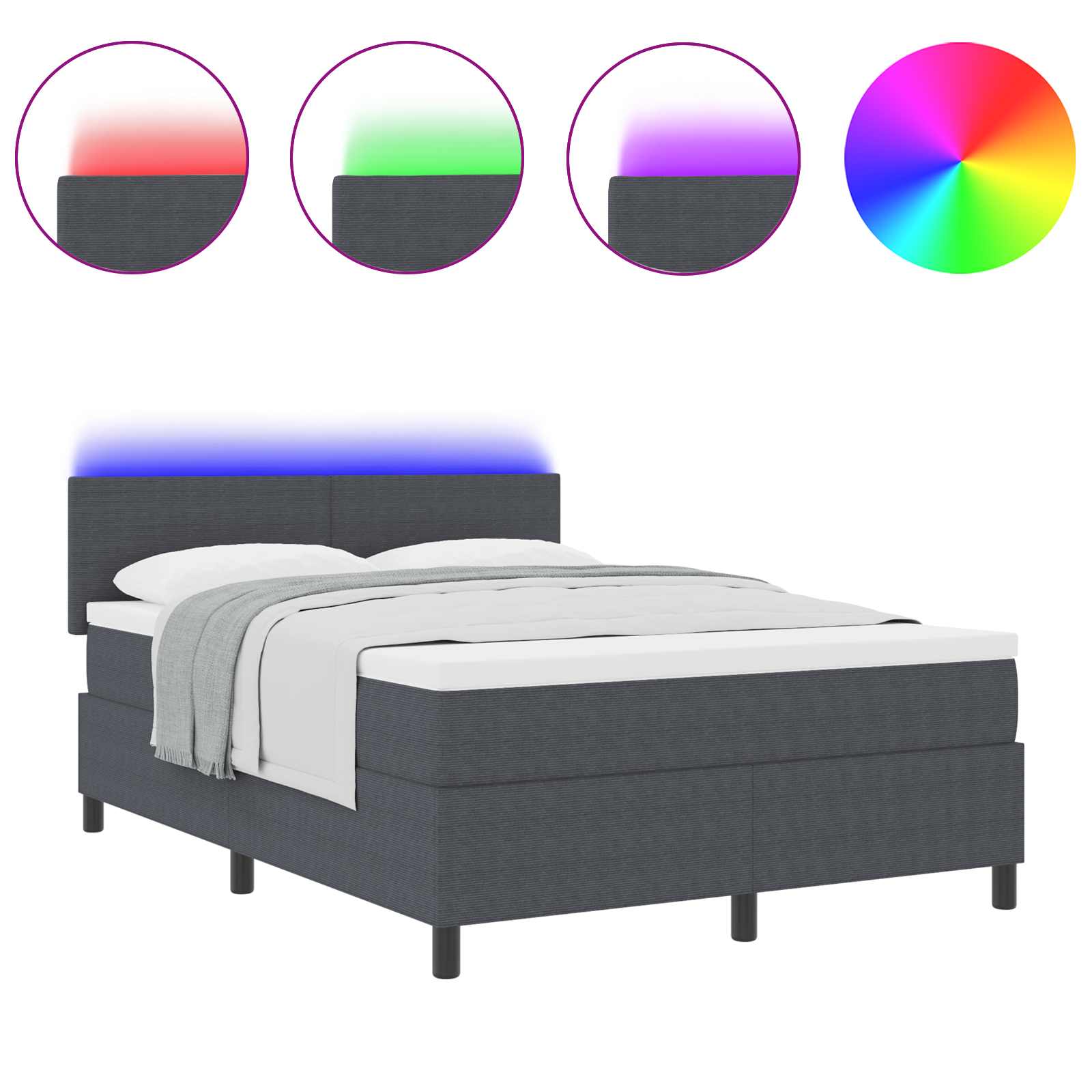 Dit strakke LED boxspringbed heeft een modern ontwerp dat jouw slaapkamer een upgrade geeft. Eenvoudig en functioneel, met strakke lijnen en slimme features, is het ideaal voor iedereen die houdt van een hedendaagse stijl. Het verstelbare hoofdbord biedt verschillende hoogte-opties, terwijl de geïntegreerde LED-verlichting voor een stijlvolle sfeer zorgt. Het medium-firm pocketverenkussen biedt comfort voor verschillende slaapposities.