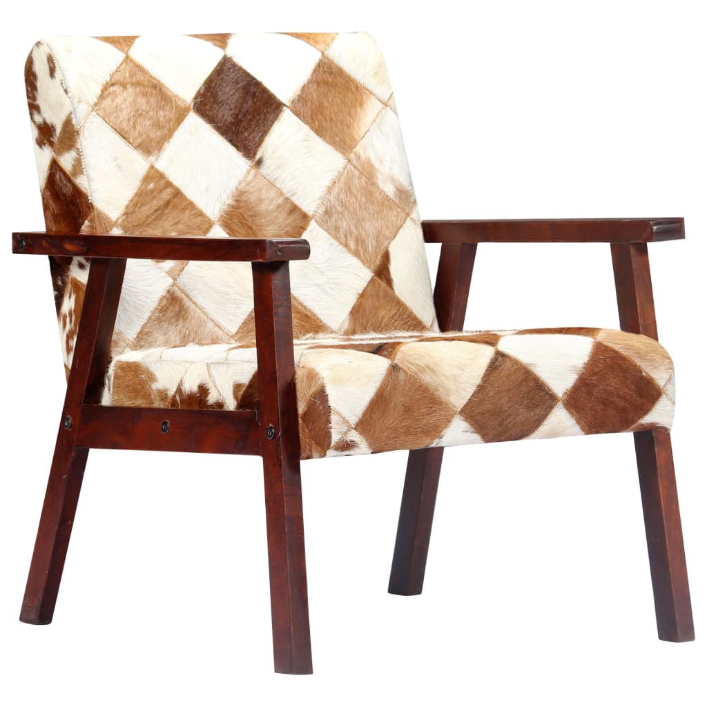 Deze erg comfortabele fauteuil met koeienhuid-look heeft een ingetogen ontwerp en is ideaal om te lezen, te kletsen, tv te kijken of gewoon te ontspannen.