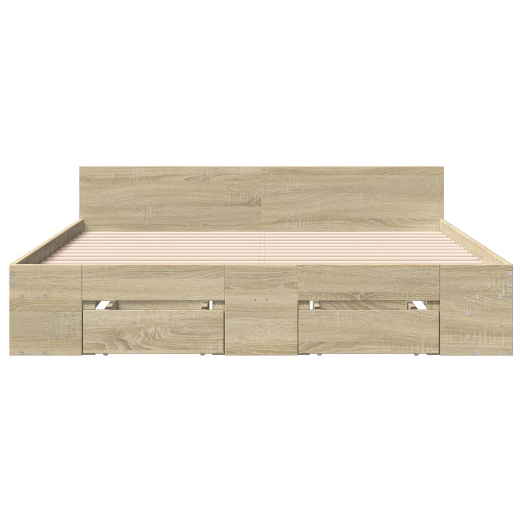- Duurzaam materiaal: het bedframe is gemaakt van bewerkt hout. Het bewerkte hout is van hoge kwaliteit, heeft een glad oppervlak en is sterk, stabiel en vochtbestendig.