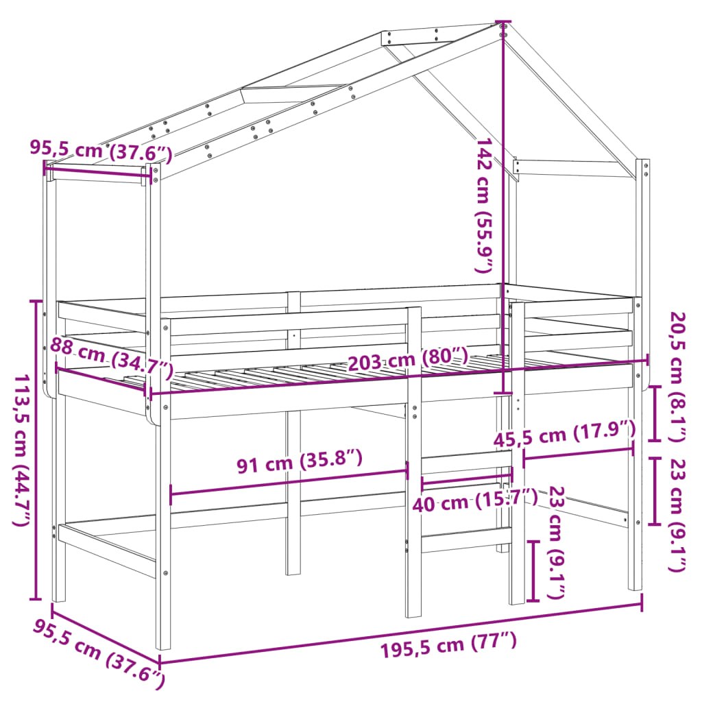 - Volledig gebruik van de ruimte: deze eenpersoons hoogslaper staat 78,5 cm boven de grond, waardoor eronder voldoende ruimte ontstaat voor opbergruimte of andere activiteiten. Deze ruimte kan worden gebruikt om opbergdozen op te stapelen, groot speelgoed op te bergen of zelfs een kinderbank te plaatsen om te lezen. Bovendien kan je kind de ruimte onder het houten bedframe gebruiken als geheime basis en genieten van fantasierijk spel.