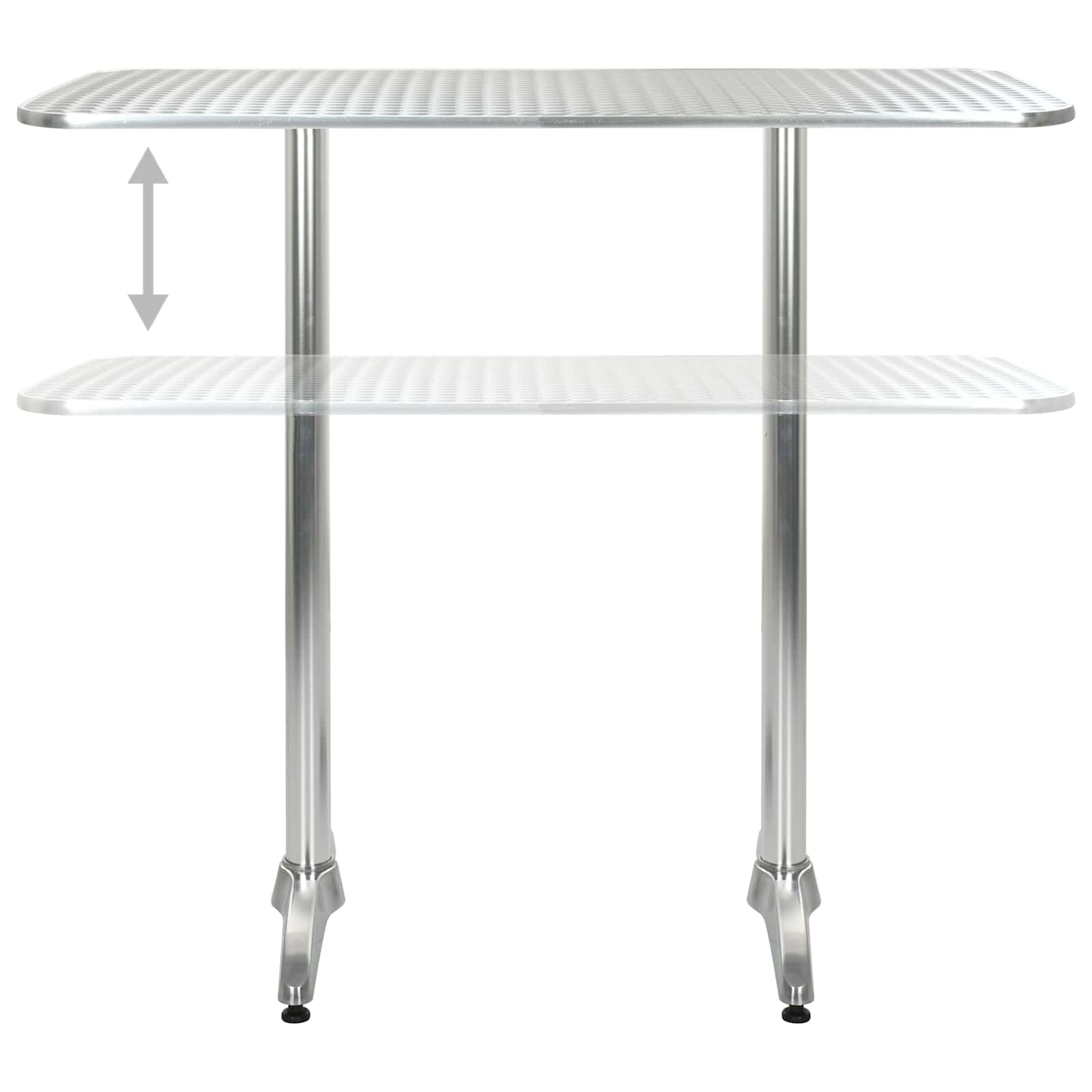 Deze moderne buitentafel heeft een strakke, minimalistische vorm die perfect je tuin of patio opvrolijkt. De rechthoekige vorm en zilveren afwerking geven een hedendaags tintje dat makkelijk aansluit bij verschillende stijlen, en leveren zowel functionaliteit als visuele aantrekkingskracht.