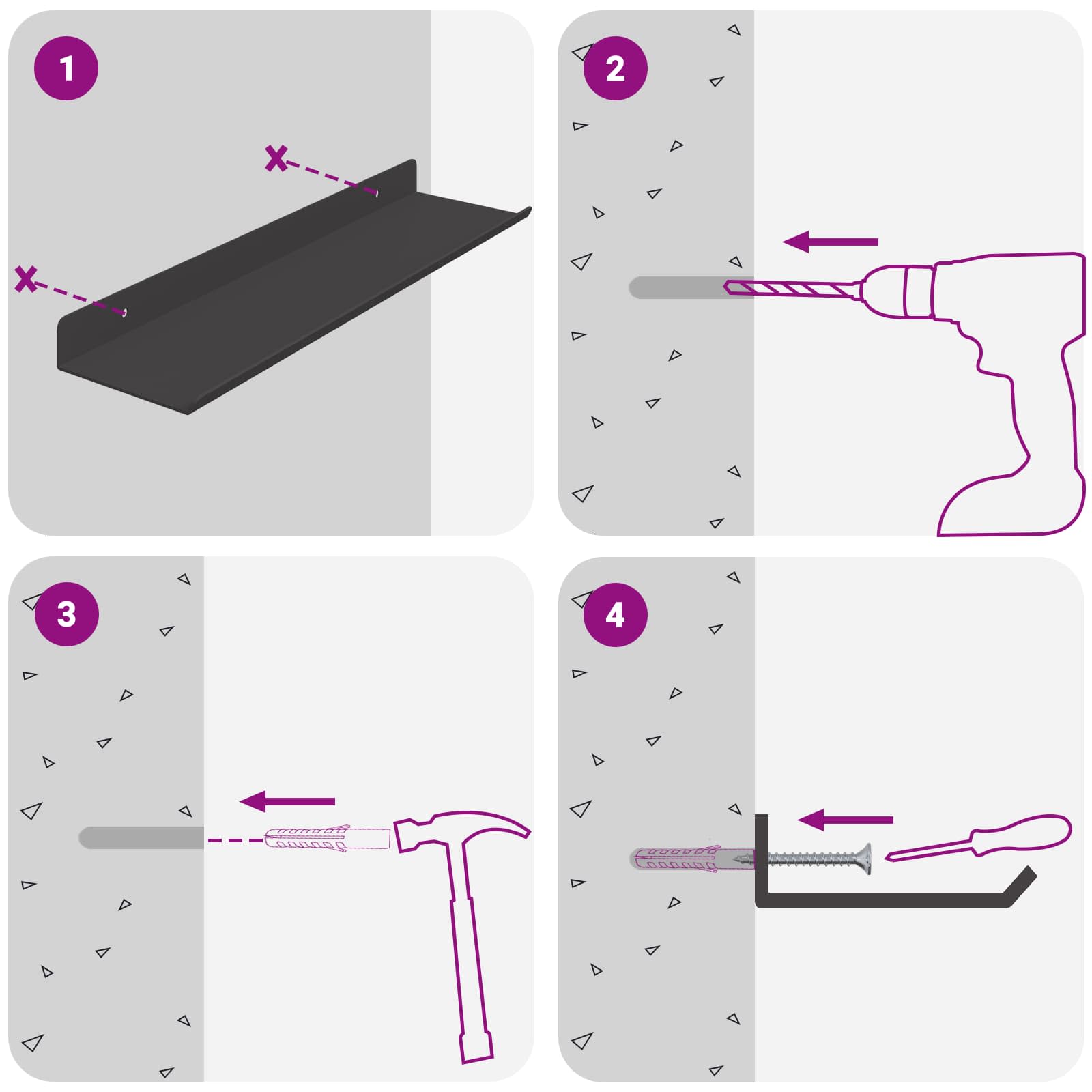 - Materialen: Deze plank is van metaal, dat bekend staat om zijn kracht en duurzaamheid. Door de metalen bouw blijft hij in topvorm en verliest hij zijn slanke look niet. De matte afwerking geeft een moderne uitstraling, die zowel traditionele als hedendaagse stijlen aanvult.