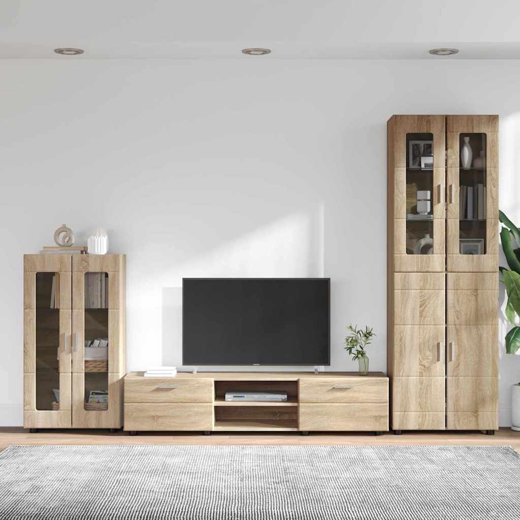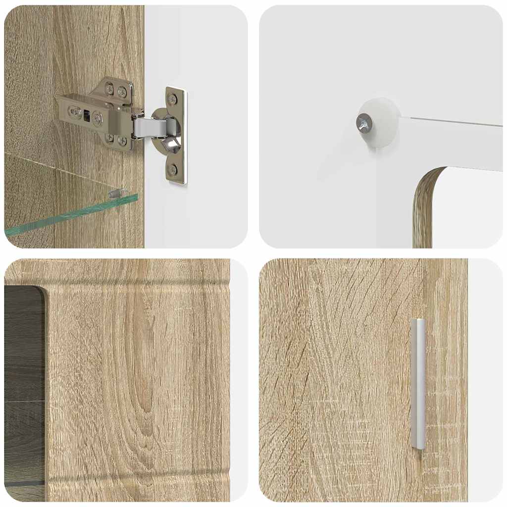 - Hoogwaardig behandeld hout: De kast is gemaakt van engineered wood, bekend om zijn duurzaamheid en stabiliteit. Dit materiaal zorgt voor een lange levensduur en houdt goed stand bij regelmatig gebruik. Het vlakke oppervlak onderstreept de verfijning van de kast, die perfect aansluit bij moderne interieurs.