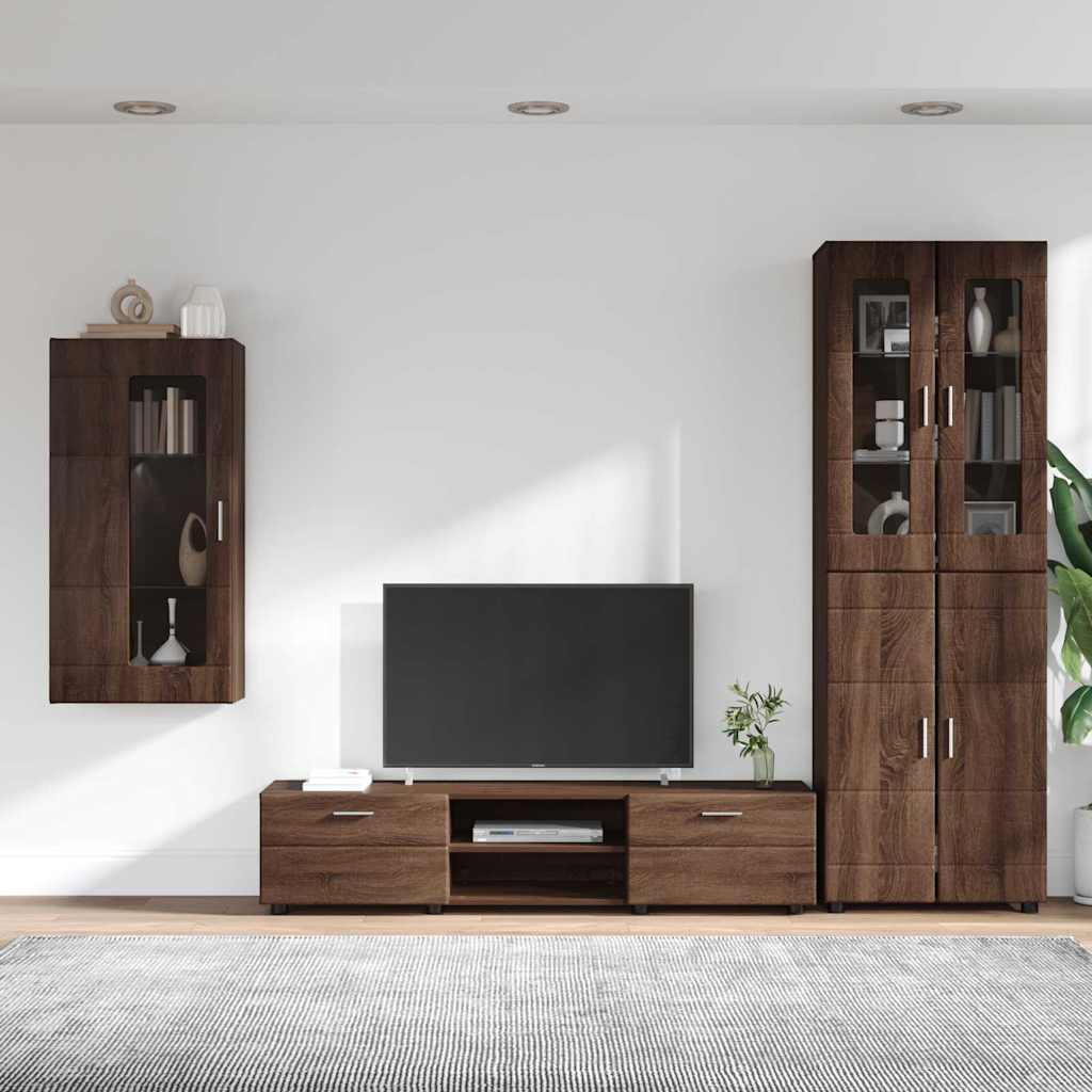 - Hoogwaardig behandeld hout: De kast is gemaakt van engineered wood, bekend om zijn duurzaamheid en stabiliteit. Dit materiaal zorgt voor een lange levensduur en houdt goed stand bij regelmatig gebruik. Het vlakke oppervlak onderstreept de verfijning van de kast, die perfect aansluit bij moderne interieurs.