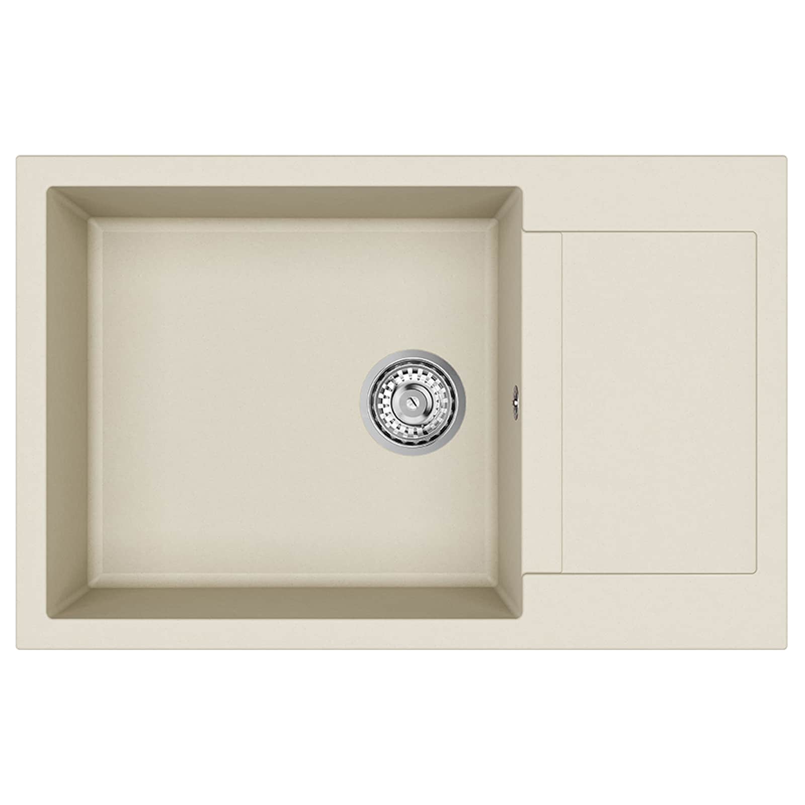 - Materialen: De gootsteen is gemaakt van een sterke mix van 80% kwarts en 20% hars, wat zorgt voor een stevige en duurzame constructie die goed bestand is tegen afschilferen en krassen, zelfs bij dagelijks gebruik in een drukke keuken.