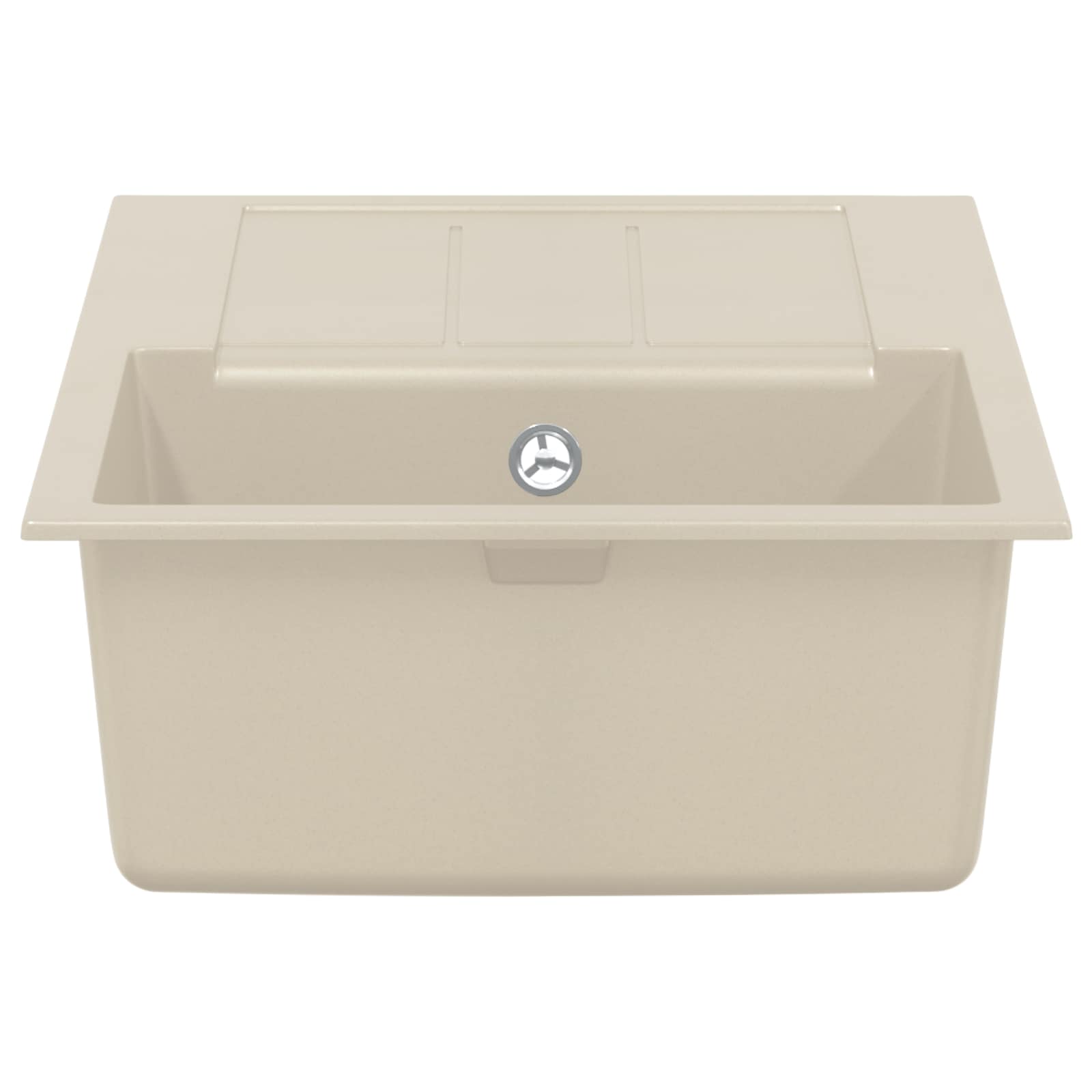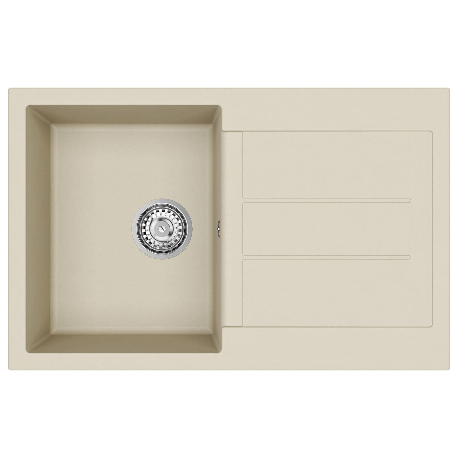 - Materialen: De gootsteen is gemaakt van een sterke mix van 80% kwarts en 20% hars, wat zorgt voor een stevige en duurzame constructie die goed bestand is tegen afschilferen en krassen, zelfs bij dagelijks gebruik in een drukke keuken.