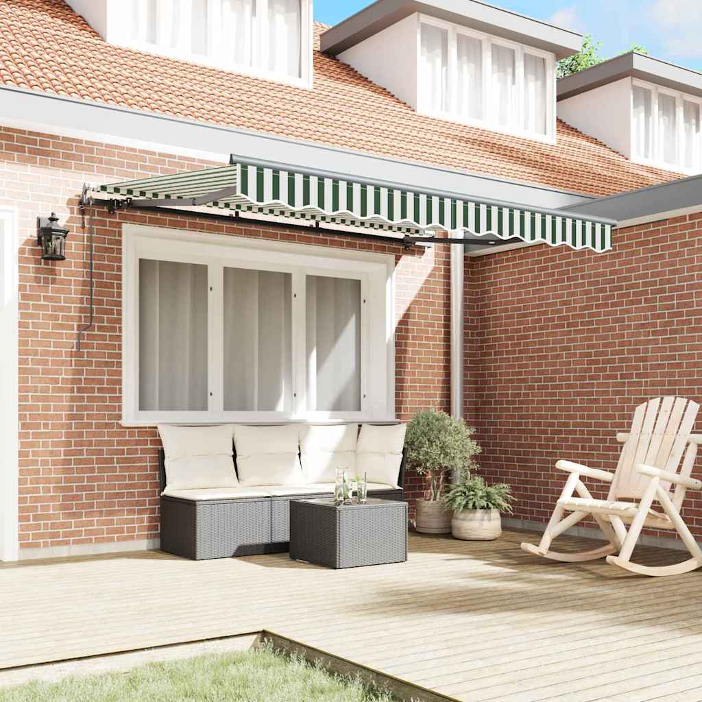 Deze moderne inlegluifel is een stijlvolle en praktische aanvulling voor elke buitenruimte. Ontworpen voor tuinen en terrassen, heeft hij een glad oppervlak en een strak gestreept patroon dat elegantie toevoegt én je beschermt tegen de zon. Perfect voor de zomer, deze luifel combineert functionaliteit met design, zodat je lekker van het buitenleven kunt genieten. Dankzij het intrekbare ontwerp biedt hij flexibele schaduw, ideaal voor gezellige bijeenkomsten of relax momenten in je buitenparadijs.