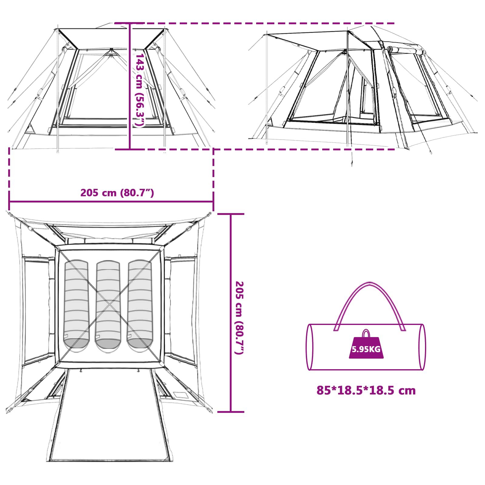 Deze Instant Tent is een praktische oplossing voor iedereen die van buiten houdt en comfort zoekt tijdens het kamperen. Met een eenvoudig snelontwerp en stevige bouw is hij ideaal voor zomerse avonturen. Dit is een tent voor drie personen die een gezellige en veilige plek biedt tegen de elementen, met een modern ontwerp dat in diverse buitenlocaties past. Dankzij de compacte en lichte structuur is hij perfect voor wie graag op avontuur gaat en altijd een betrouwbare schuilplaats nodig heeft.