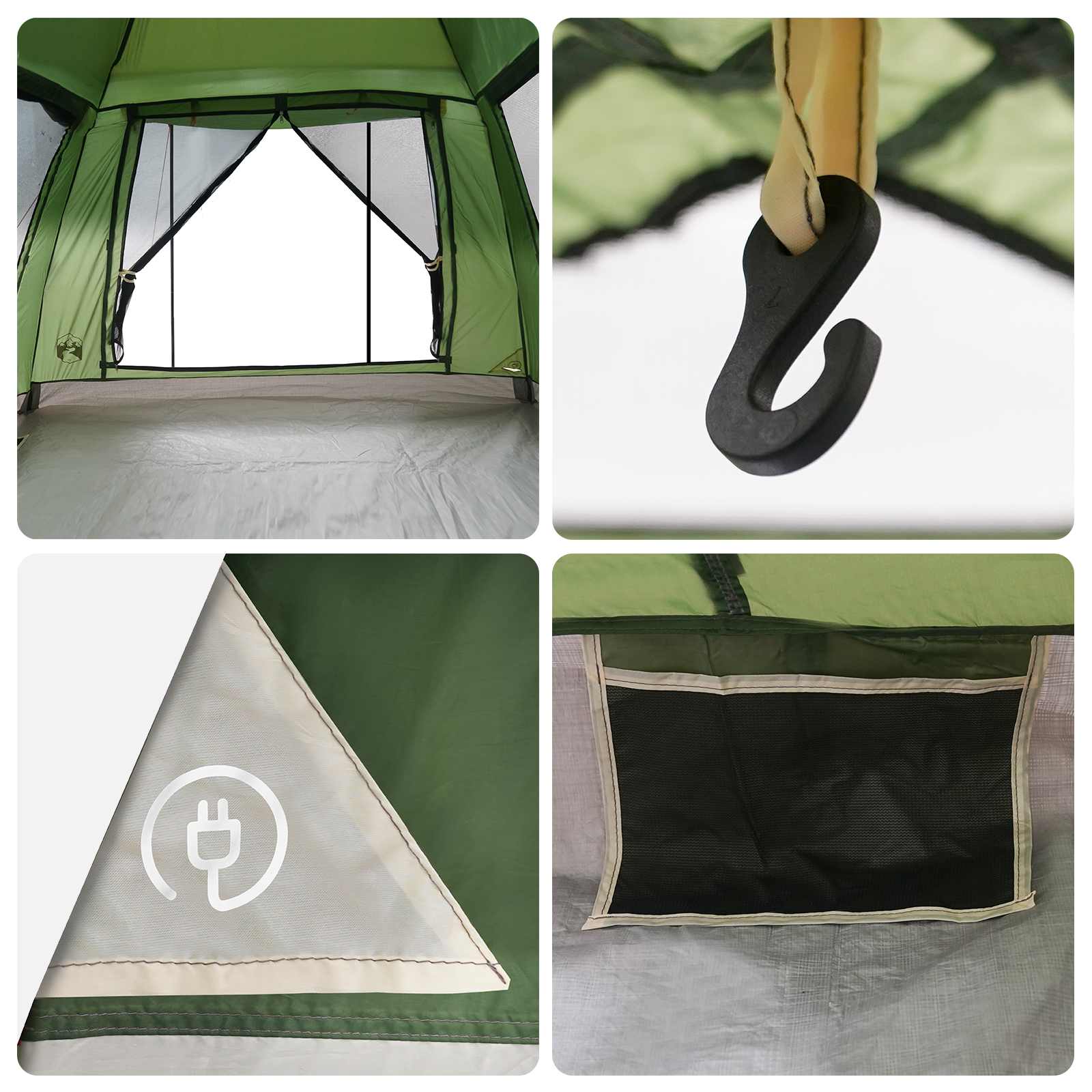 - Handige ontwerpeigenschappen Twee ritssluitingen voor makkelijke toegang en ventilatie, plus twee gaaszakken om al je spulletjes bij de hand te houden. De handige E-Port maakt het eenvoudig om je apparaten van stroom te voorzien, terwijl het gebruiksvriendelijke ontwerp zorgt voor een snelle op- en afbouw.