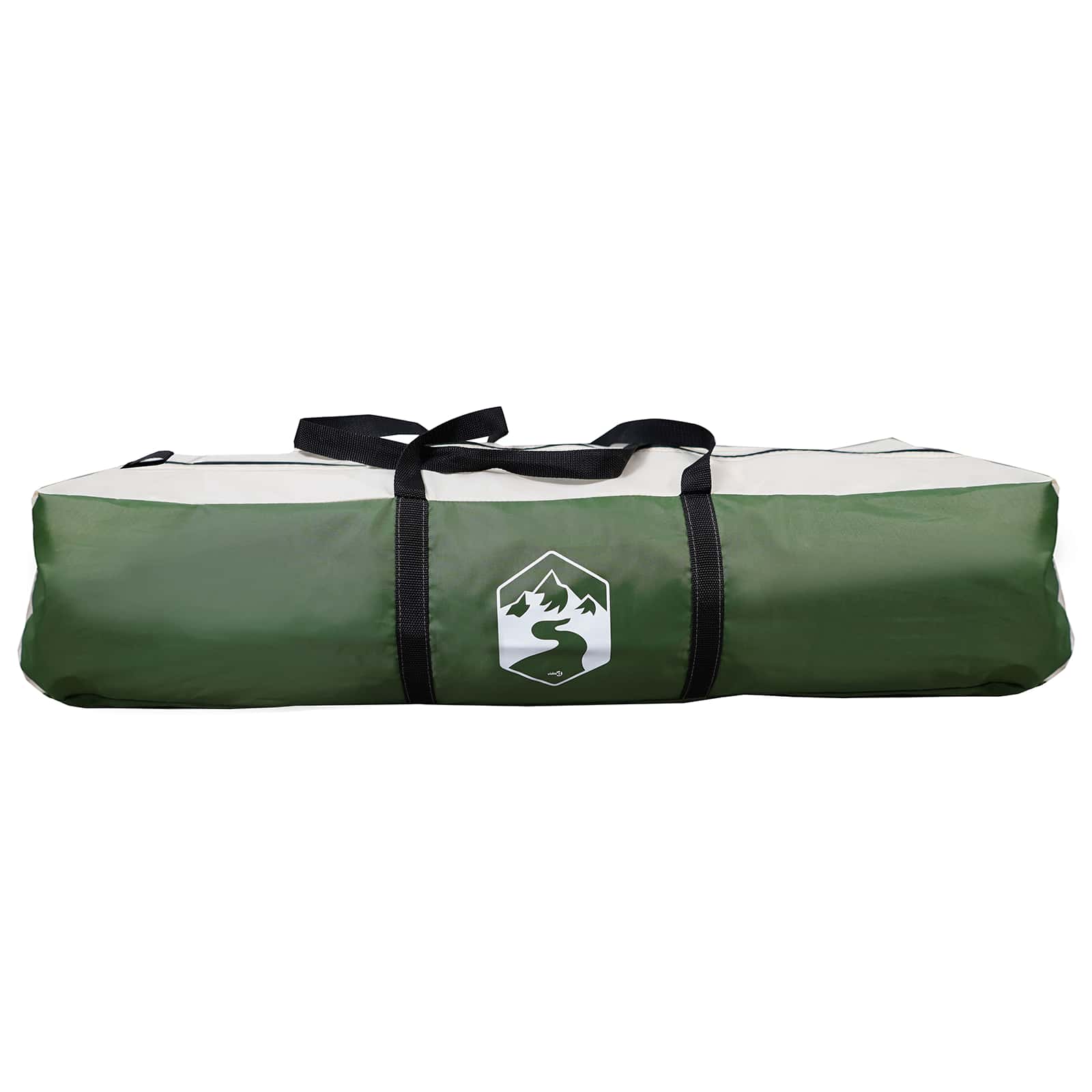 - Compleet componentenpakket Inclusief voorgeïnstalleerde palen, een afneembare rainfly voor extra bescherming, zes scheerlijnen voor stevigheid en een praktische draagtas voor gemakkelijk vervoer. De bijgeleverde haringen zorgen ervoor dat je tent goed blijft staan, zelfs als het waait, zodat je zonder zorgen kunt kamperen.