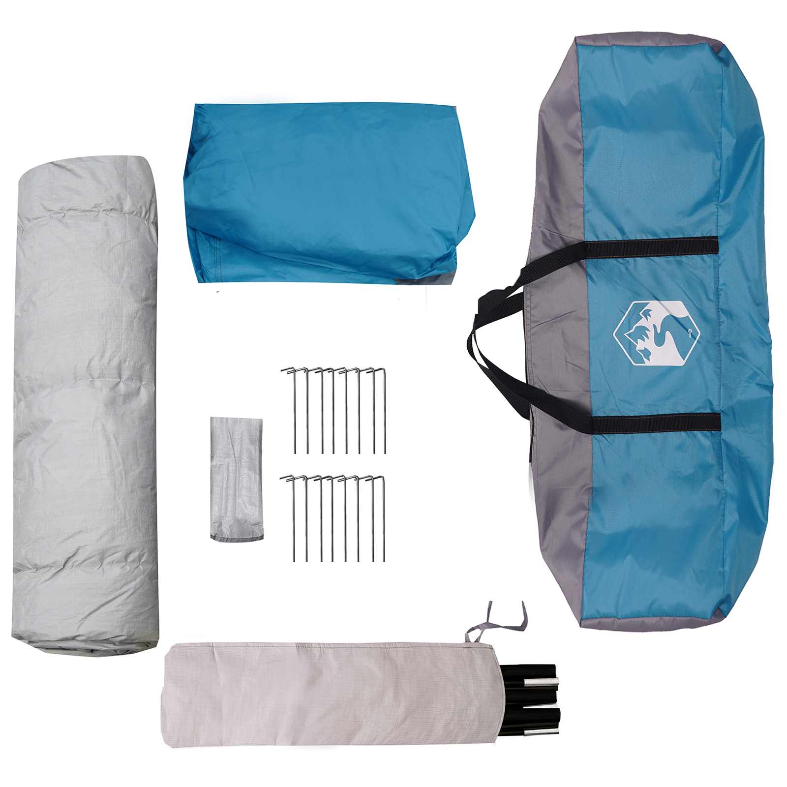 - Verhoogde draagbaarheid De tent komt met een handige draagtas en een opvouwbaar ontwerp, wat het transport en opslaan heel makkelijk maakt. Deze tent past zich prima aan je reisplannen aan, en is perfect voor wie van eenvoud houdt. Het lichte ontwerp maakt het ook fijn om te lopen, of je nu naar het strand of de bergen gaat.