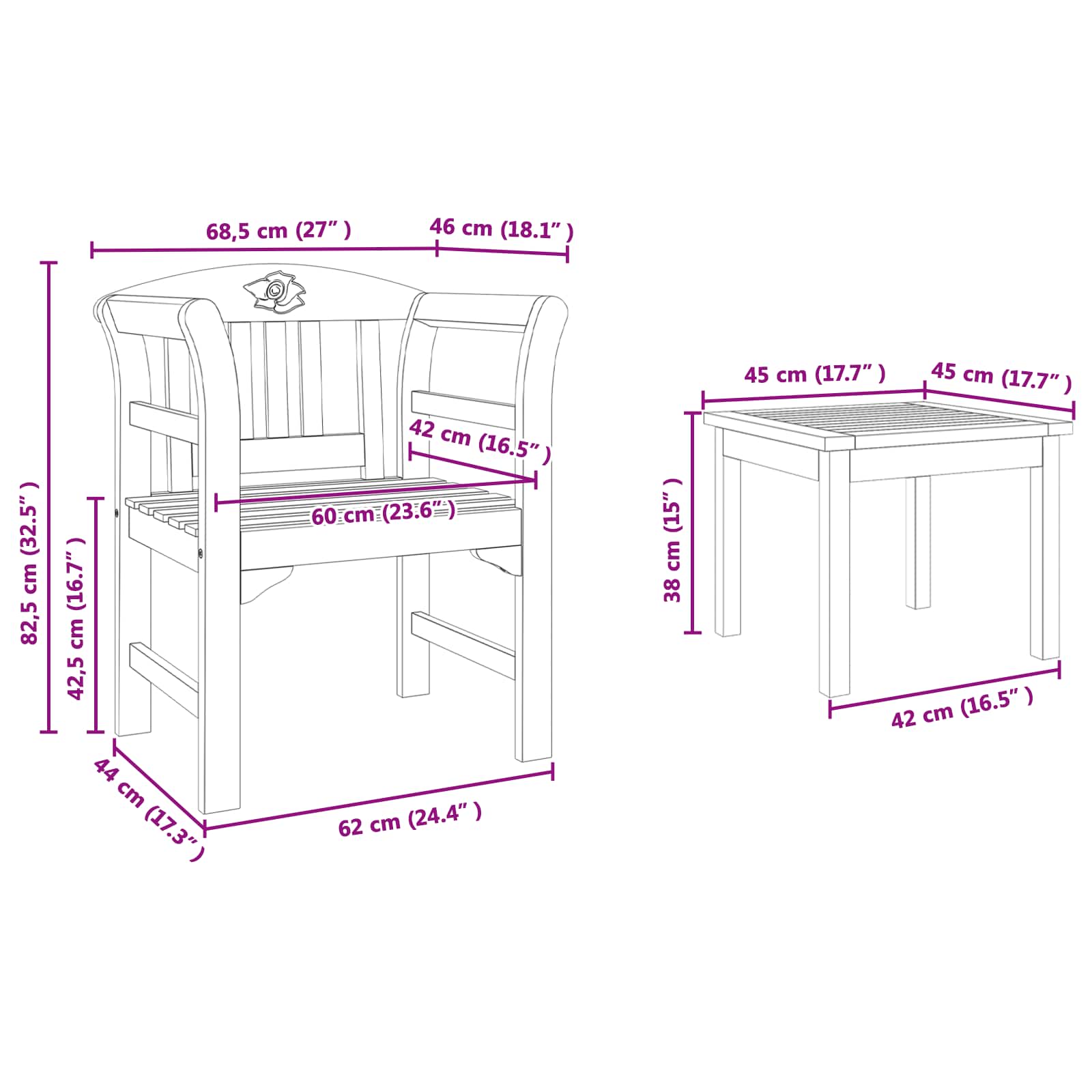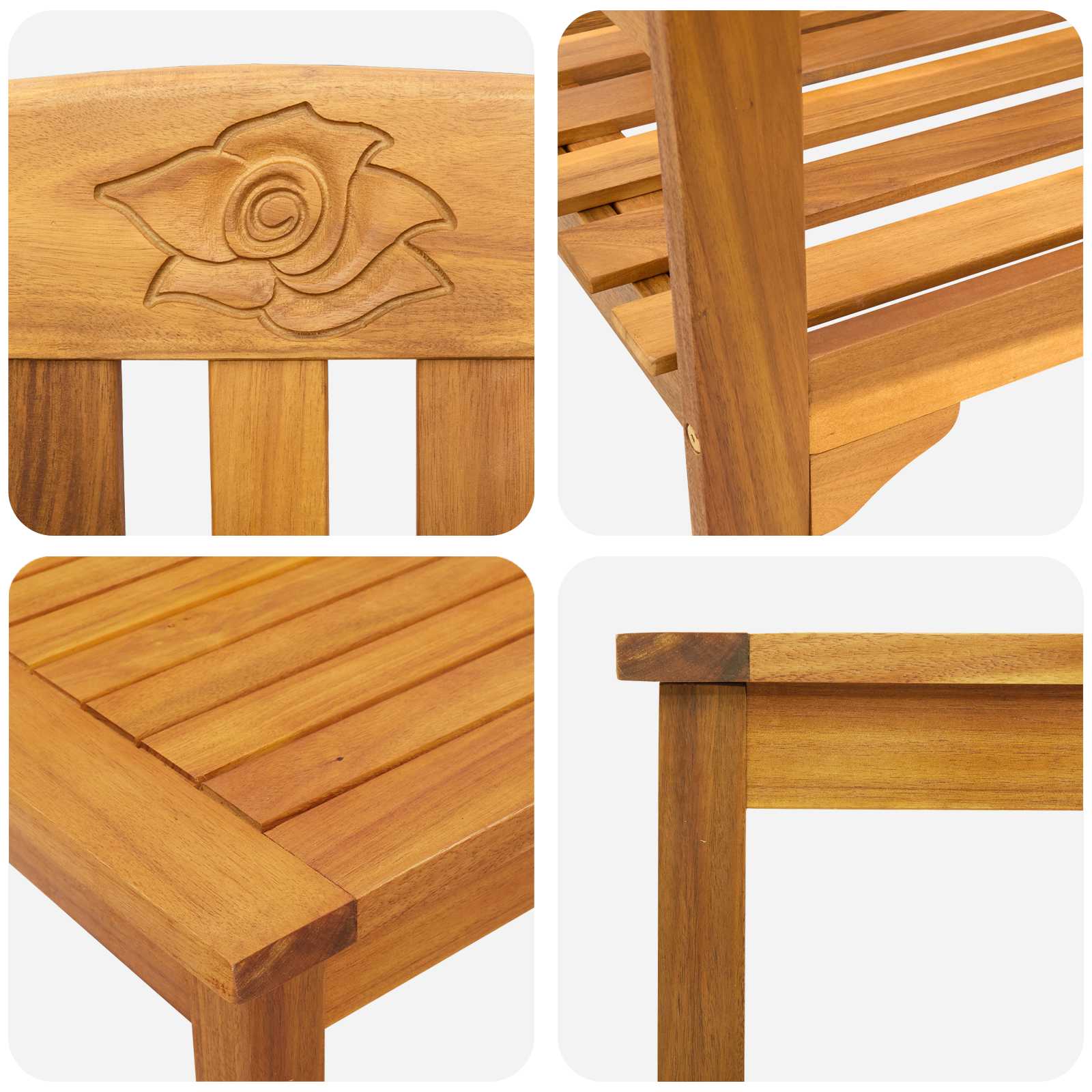 - Massief acaciahoutconstructie: De set is volledig gemaakt van massief acaciahout, wat zorgt voor een stevige en duurzame constructie. Het hout is bestand tegen verschillende weersomstandigheden, zodat je meubels buiten kunnen blijven staan. Gebruik een waterdichte hoes om de levensduur te verlengen.