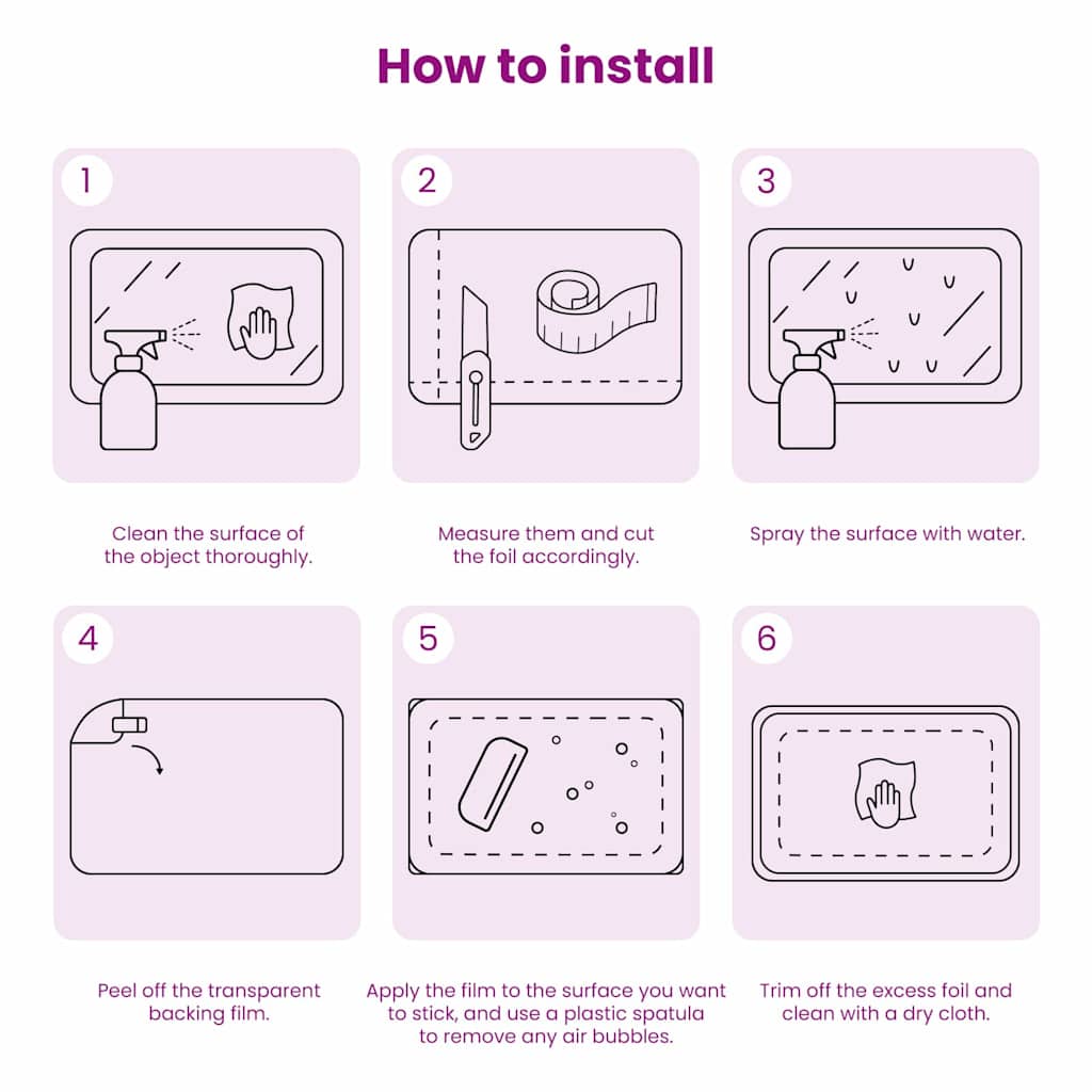 - Statische cling applicatie De folie plakt op elk glad oppervlak zonder lijm. Het aanbrengen gaat super makkelijk, zelfs als je geen ervaring hebt. Je kunt de folie opnieuw verplaatsen of zelfs weghalen zonder dat er resten achterblijven.