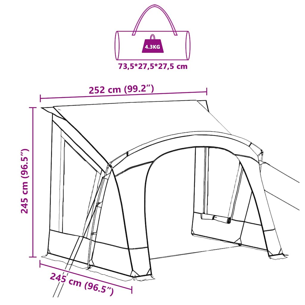 Deze moderne Caravan Tent biedt maximaal comfort en voldoende ruimte voor groepsactiviteiten en is ook nog eens makkelijk op te zetten en op te bergen. Met zijn gladde taffeta-stof en trendy ontwerp past het prima in de tuin of op het terras, ideaal voor je zomerse avonturen en kampeertrips.