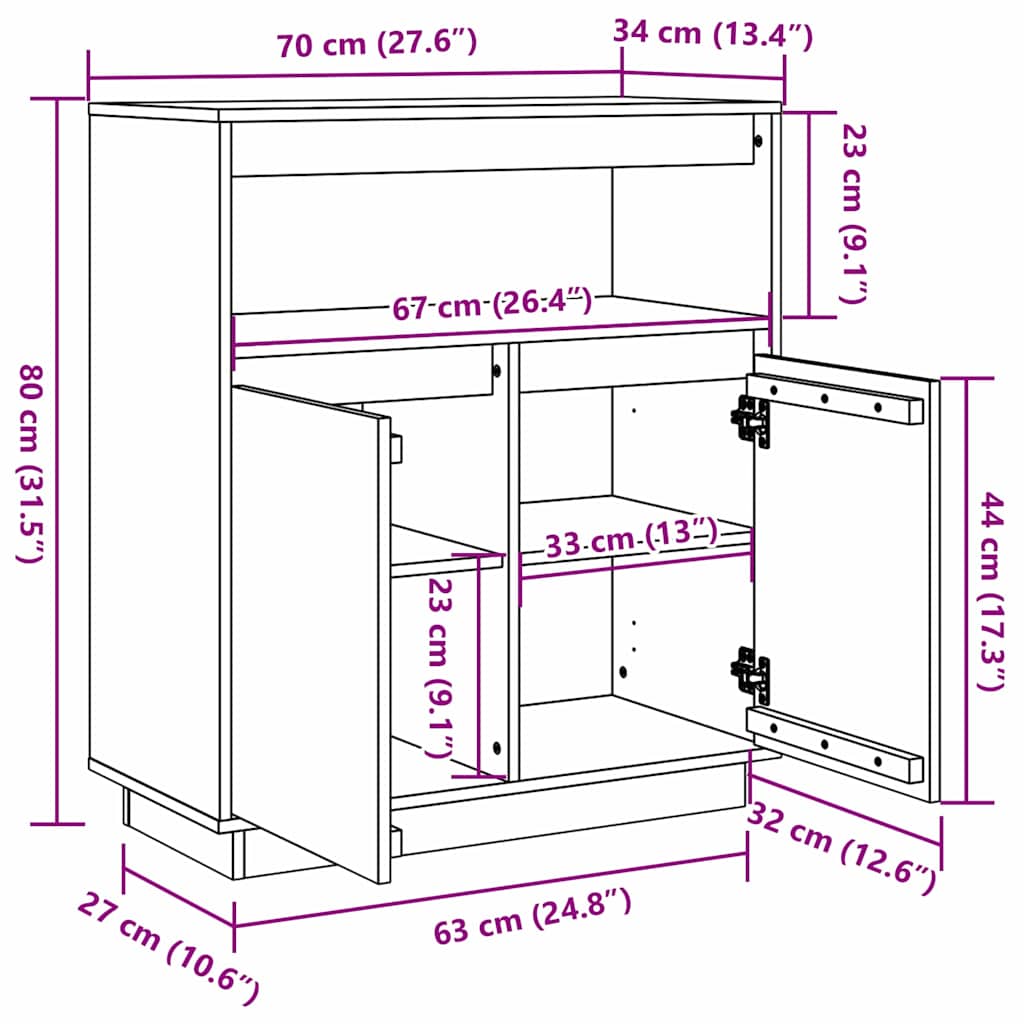 - Handige planken: De planken zorgen voor een praktische en goede opslagoplossing, gemaakt van massief grenen. Ze zijn simpel maar effectief, waardoor dit dressoir zowel functioneel als aantrekkelijk is. Het strakke ontwerp benadrukt de eenvoud en verhoogt de gebruiksvriendelijkheid.