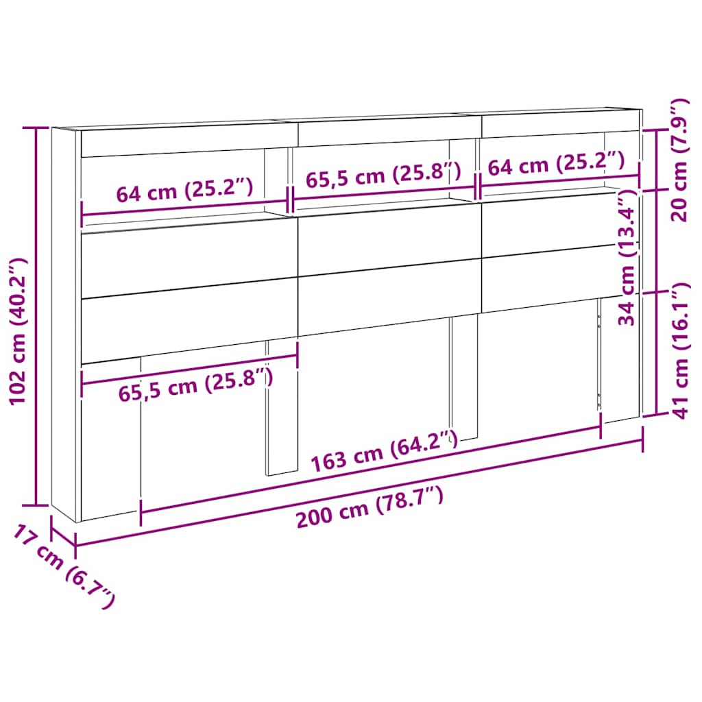 - Algemene afmetingen: 200 x 17 x 102 cm (L x B x H)
