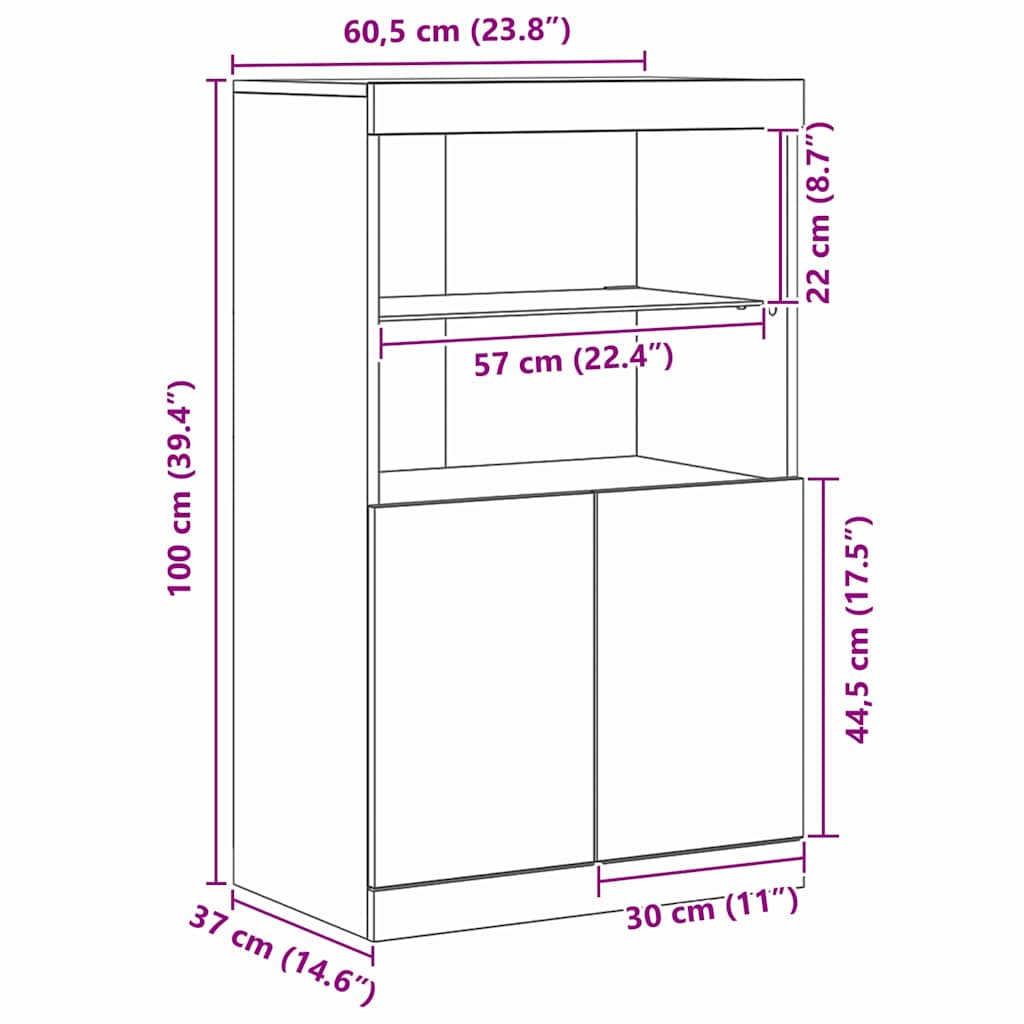 - Kenmerken: Breng meer flair in je woon- of eetruimte met de RGB LED-stripverlichting. Met een simpele drukknop bedien je deze lichten, die de binnenkant van het dressoir verlichten. De moderne look past perfect bij verschillende sferen en lichtbehoeften. De USB-voeding is makkelijk aan te sluiten op je interieur.