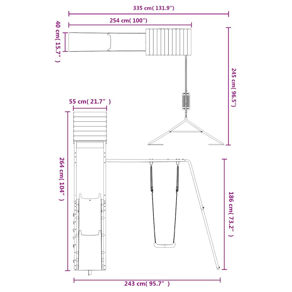 - Multi-activiteitencentrum: het speeltoestel heeft een 90 cm hoog platform en onderscheidt zich door zijn klimmuur, golvende glijbaan, een enkele schommel en een zandbak. Je kleintjes kunnen ook hun vriendjes uitnodigen om mee te doen.
