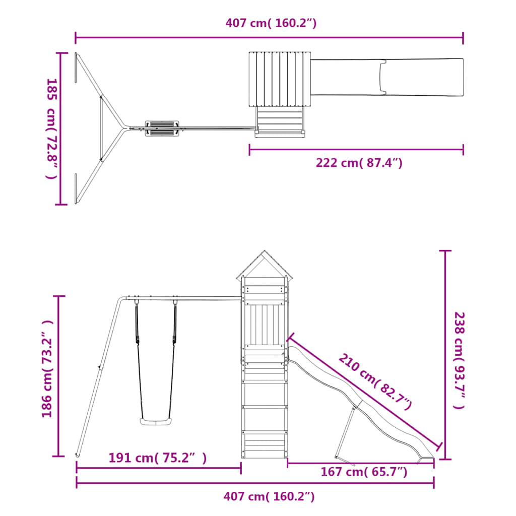 - Multi-activiteitencentra: het speeltoestel heeft een 118 cm hoog platform en heeft een golvende glijbaan, enkele schommel en een zandbak. Je kleintjes kunnen ook hun vriendjes uitnodigen om mee te doen.