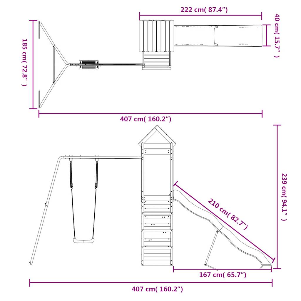 - Multi-activiteitencentra: het speeltoestel heeft een 118 cm hoog platform en heeft een klimwand, golvende glijbaan, een schommel en een zandbak. Je kleintjes kunnen ook hun vriendjes uitnodigen om mee te doen.