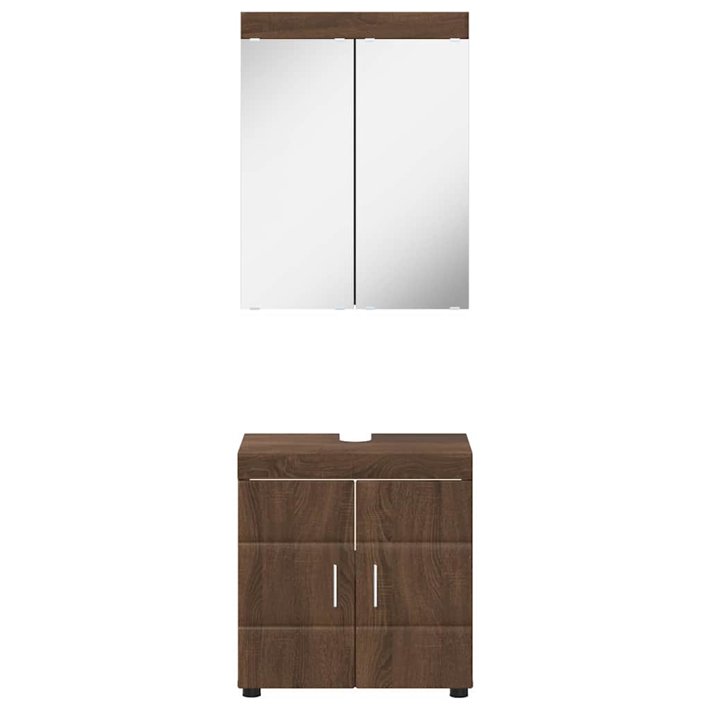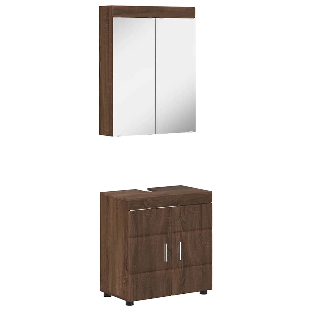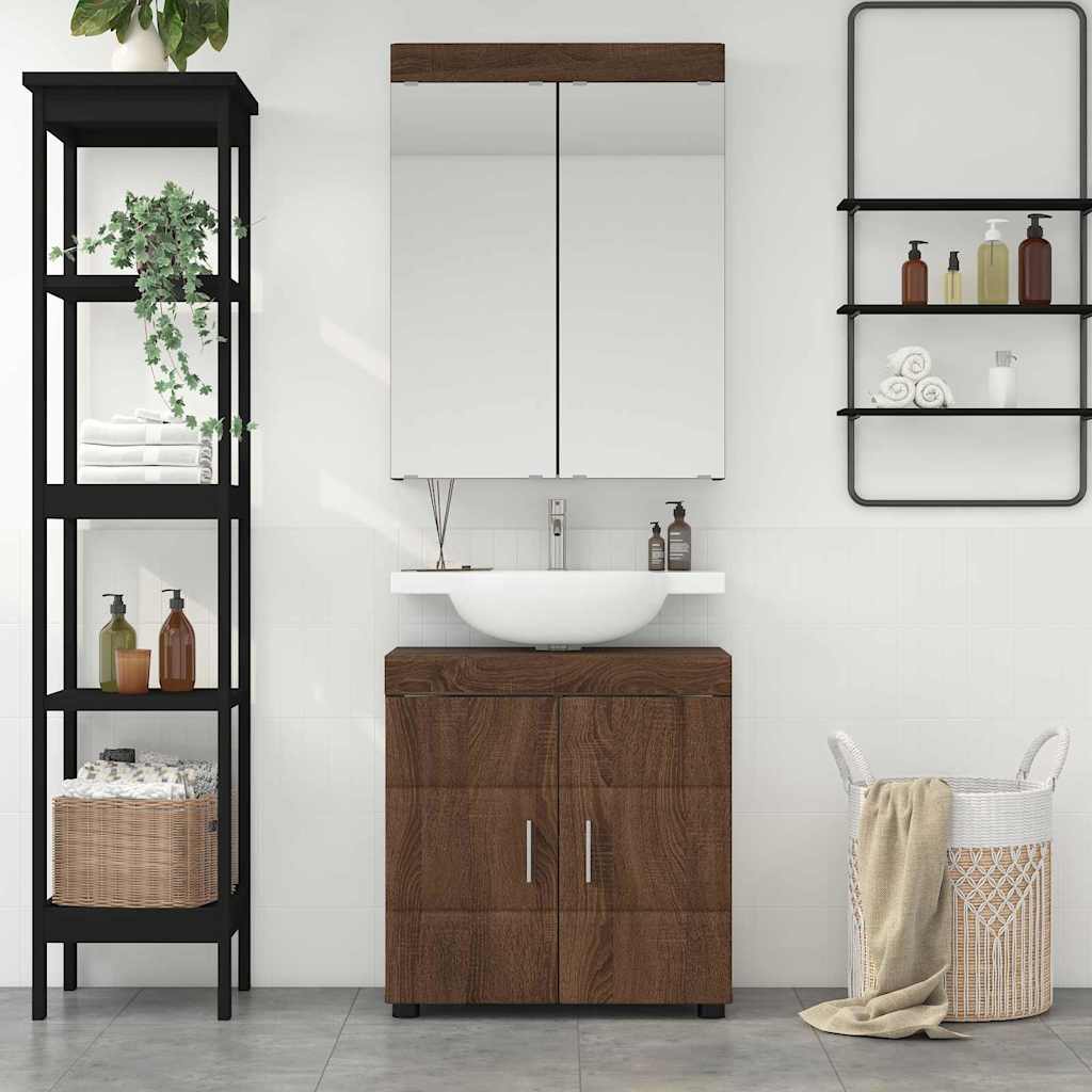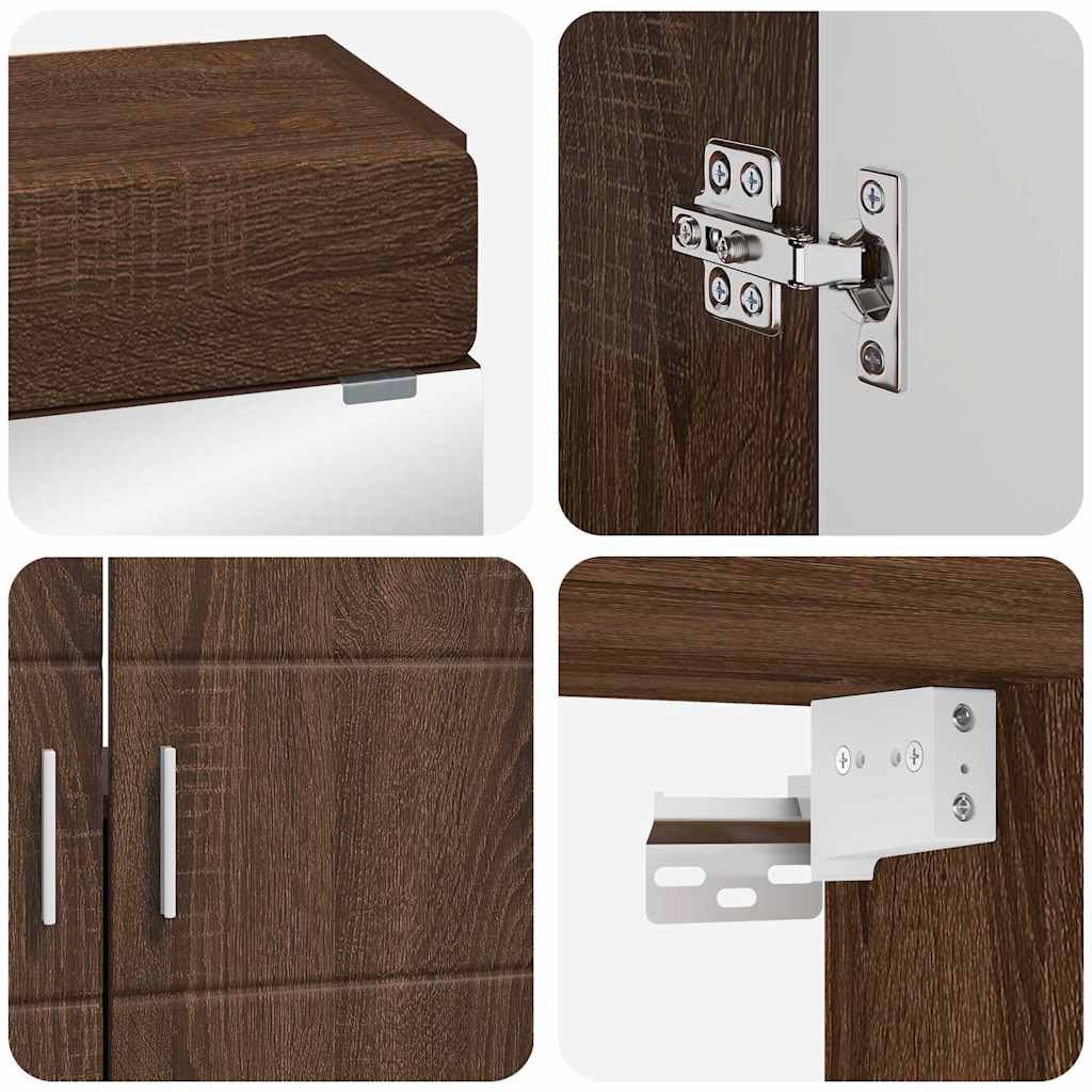Deze moderne badkamerkast set geeft je badkamer een strakke en frisse uitstraling. De kast is gemaakt van bewerkt hout, wat zorgt voor een stevige en duurzame opbergruimte. Deze set past perfect in hedendaagse badkamers en biedt volop ruimte voor al je spullen. De gladde textuur en matte afwerking maken het geheel elegant, en het slimme ontwerp is geschikt voor elke badkamermaat en -stijl.