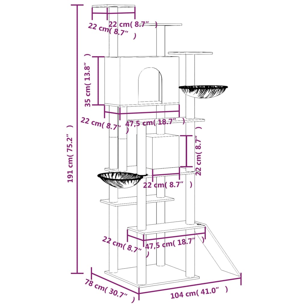 - Alles-in-één kattenmeubel: het kattenmeubel heeft meerdere niveaus, waardoor je kat een geweldige, compacte plek heeft om te spelen en lichaamsbeweging te krijgen en een warm huisje heeft om een lekker dutje te doen. Hij beschikt over een trapje, 2 huisjes, 2 mandjes en platforms.