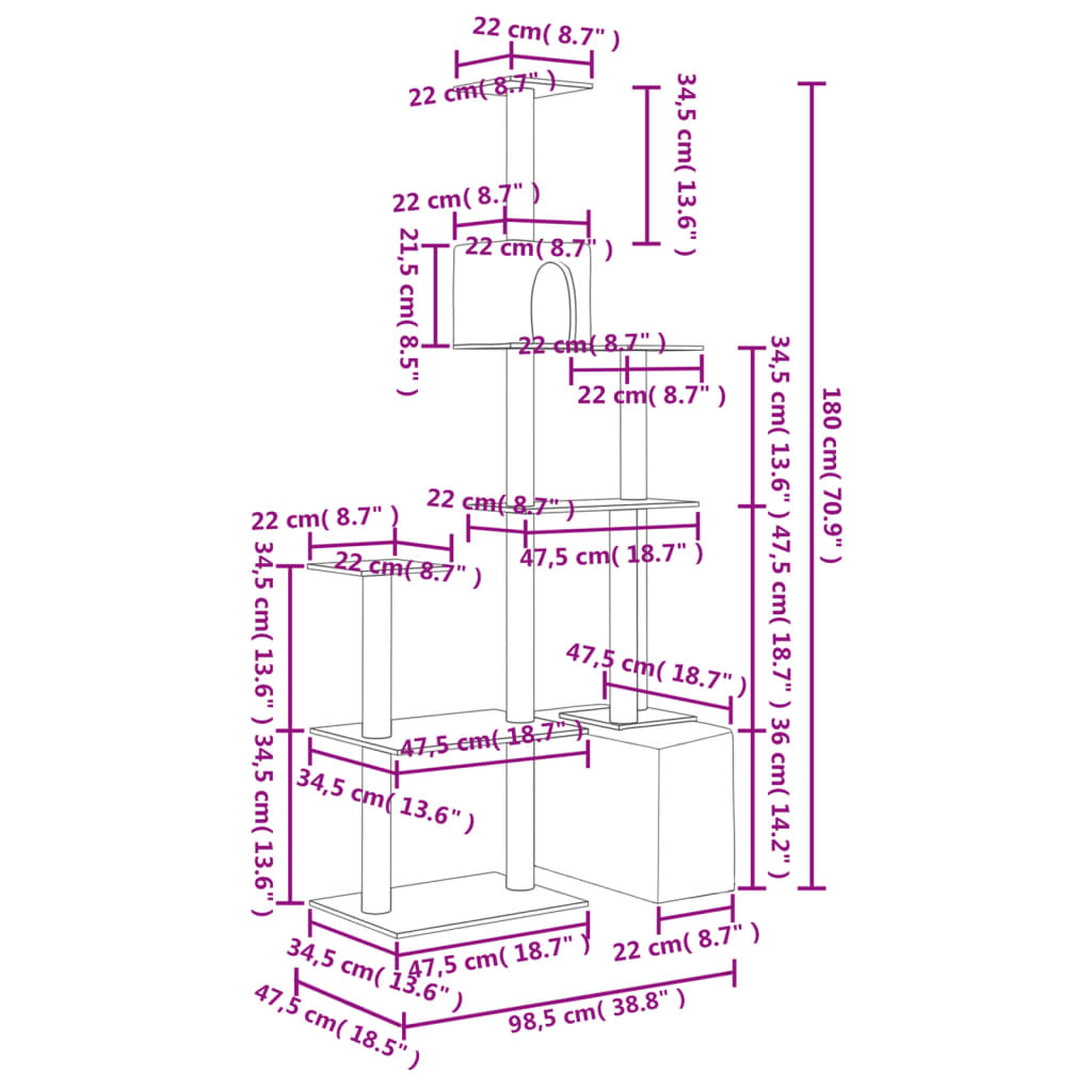 - Alles-in-één kattenmeubel: het kattenmeubel met meerdere niveaus beschikt over 2 huisjes en platforms, waardoor je katten een perfecte plek hebben om te klimmen, te zitten, te krabben, zich te verstoppen en ook te ontspannen.