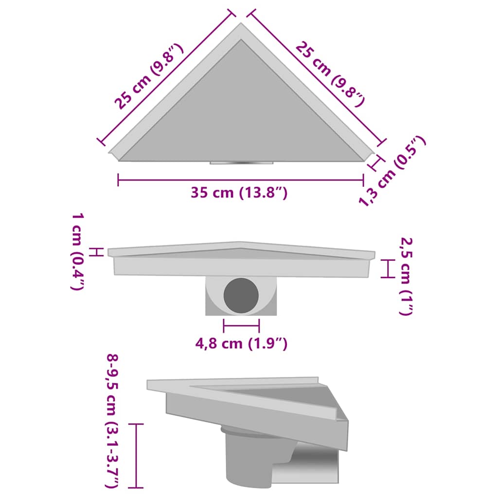 Deze multifunctionele afdekking heeft één tegel- en één vlakke zijde. Dit maakt het mogelijk om bijpassende tegels te plaatsen of gewoon te gebruiken als een normaal, plat rooster. Beide bieden een naadloze uitstraling aan je douche. Uitgerust met een zeef voorkomt de afvoer in de badkamer dat het haar in de afvoerbuis terechtkomt en de afvoerbuis blokkeert. Deze zeef is ook afneembaar voor makkelijke reiniging. Dankzij de driehoekige vorm kan de afvoer ook in de hoek van de douche gemonteerd wordt. De doucheafvoer heeft in hoogte verstelbare pootjes zodat hij aan je verschillende montagewensen voldoet. Het roestvrijstalen materiaal draagt bij aan de stevige, roestbestendige constructie van de doucheafvoer en geeft hem bovendien een moderne, elegante uitstraling die past in elk interieur.