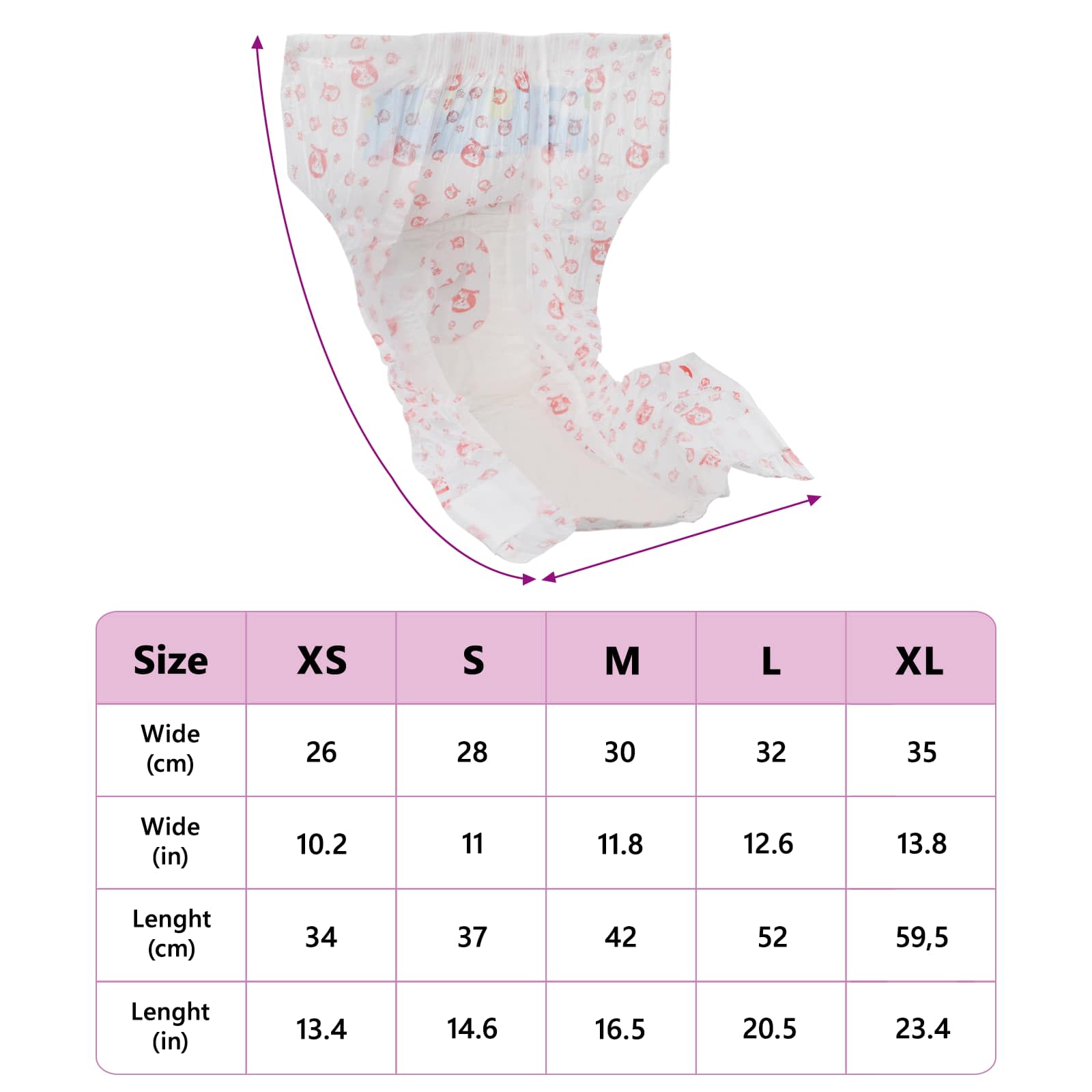 - Materialen: Deze diapers zijn gemaakt van een ademende bovenlaag en een PE-film ruglaag, wat lekkage voorkomt. Super absorberend polymeer en fluff pulp verhogen de absorptie, zodat ze langdurig comfort bieden. De materialen zijn speciaal gekozen om je hond een zachte, comfortabele ervaring te geven, terwijl de eigenaar zich geen zorgen hoeft te maken dankzij hun betrouwbare prestaties onder verschillende omstandigheden.