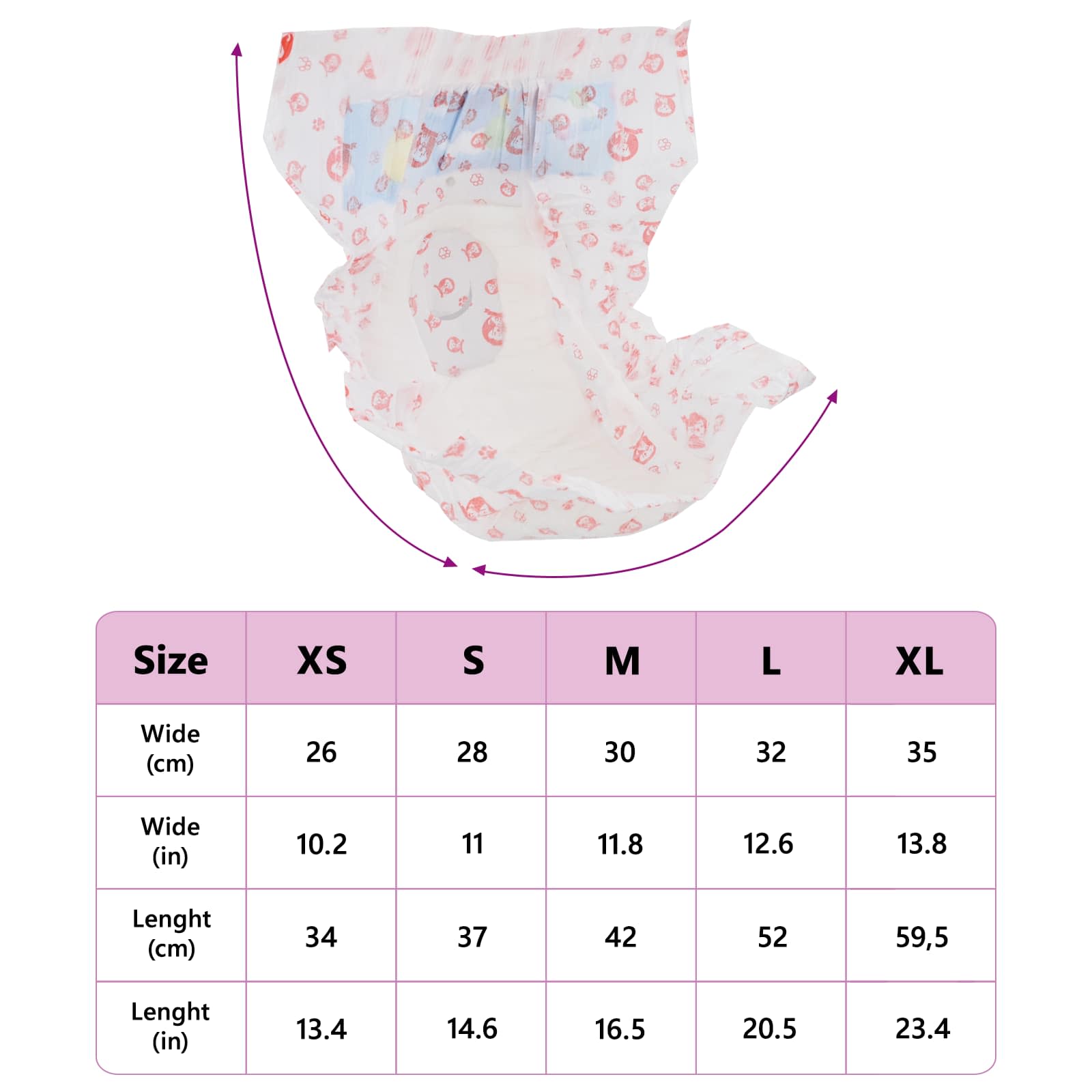 - Materialen: Deze diapers zijn gemaakt van een ademende bovenlaag en een PE-film ruglaag, wat lekkage voorkomt. Super absorberend polymeer en fluff pulp verhogen de absorptie, zodat ze langdurig comfort bieden. De materialen zijn speciaal gekozen om je hond een zachte, comfortabele ervaring te geven, terwijl de eigenaar zich geen zorgen hoeft te maken dankzij hun betrouwbare prestaties onder verschillende omstandigheden.